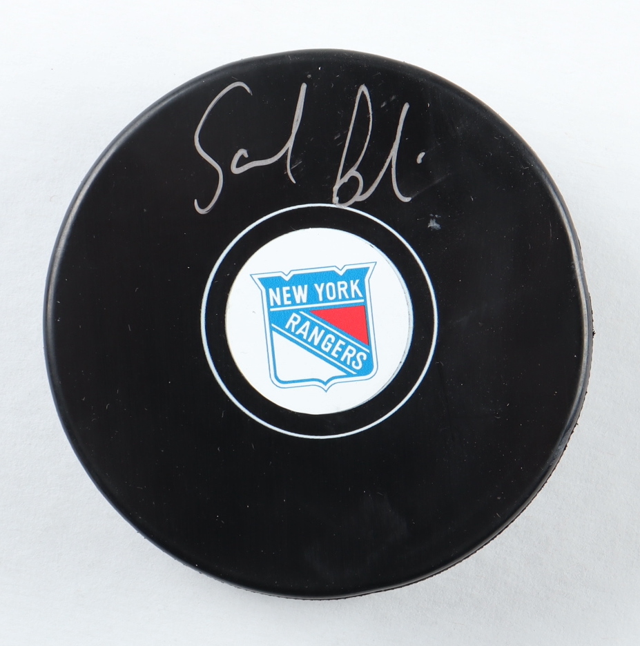 New York Rangers logo hockey puck has been hand-signed by Sammy Blais.
