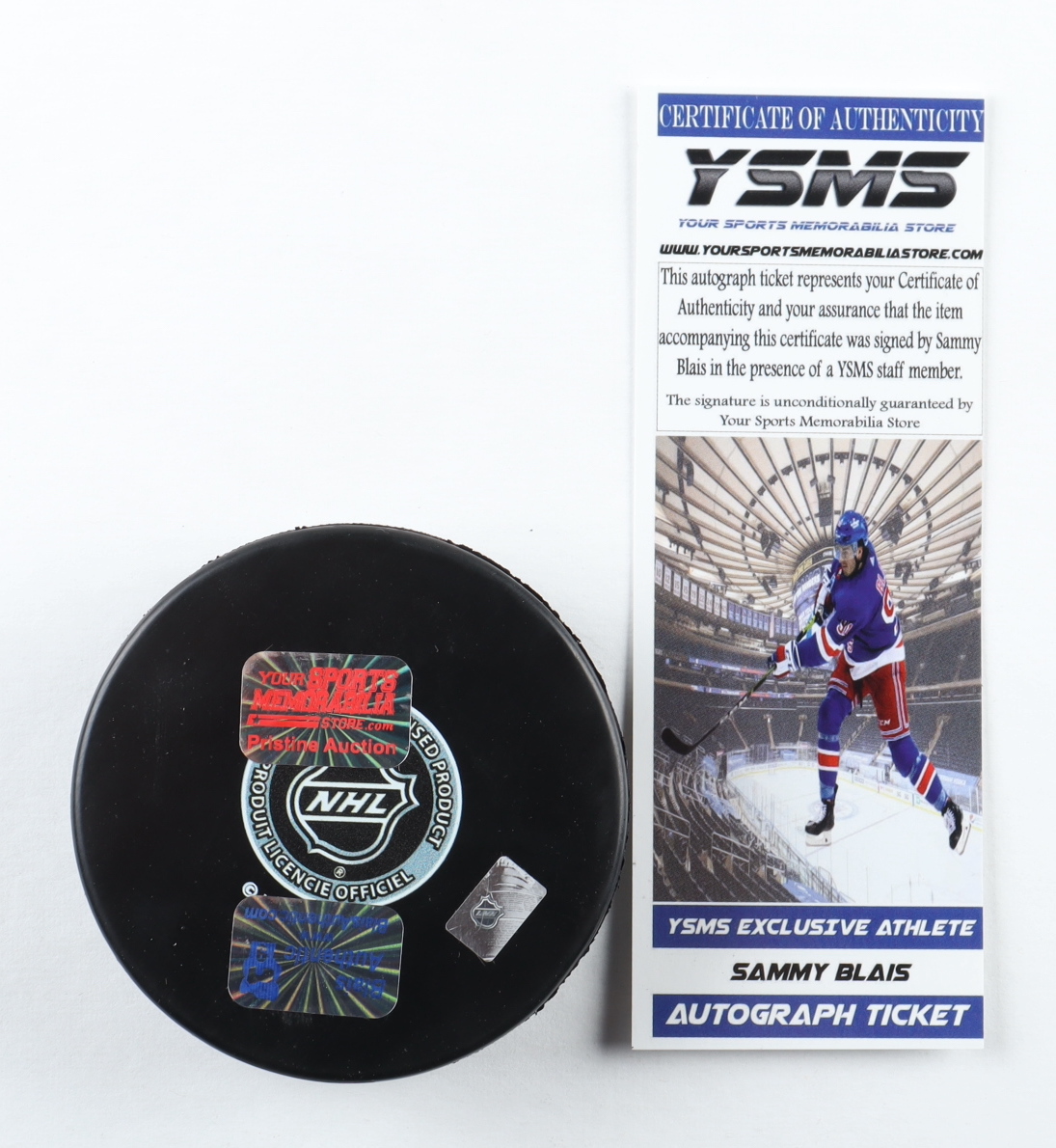 Sammy Blais Signed Rangers Logo Hockey Puck (YSMS & Blais)