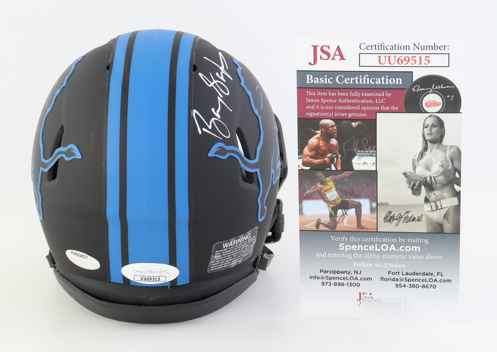 Barry Sanders Signed Lions Eclipse Alternate Speed Mini Helmet (JSA & Schwartz)