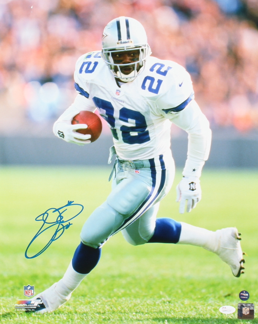 Photo measures 16" x 20" in size and has been hand-signed by Emmitt Smith (Dallas Cowboys, HOF).