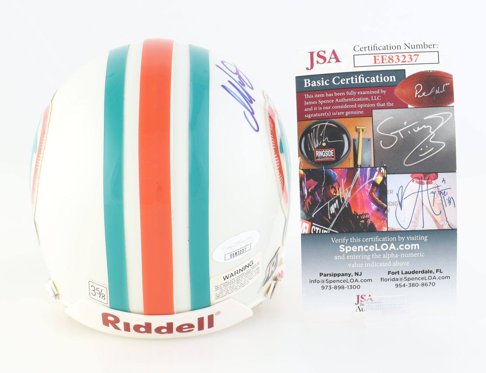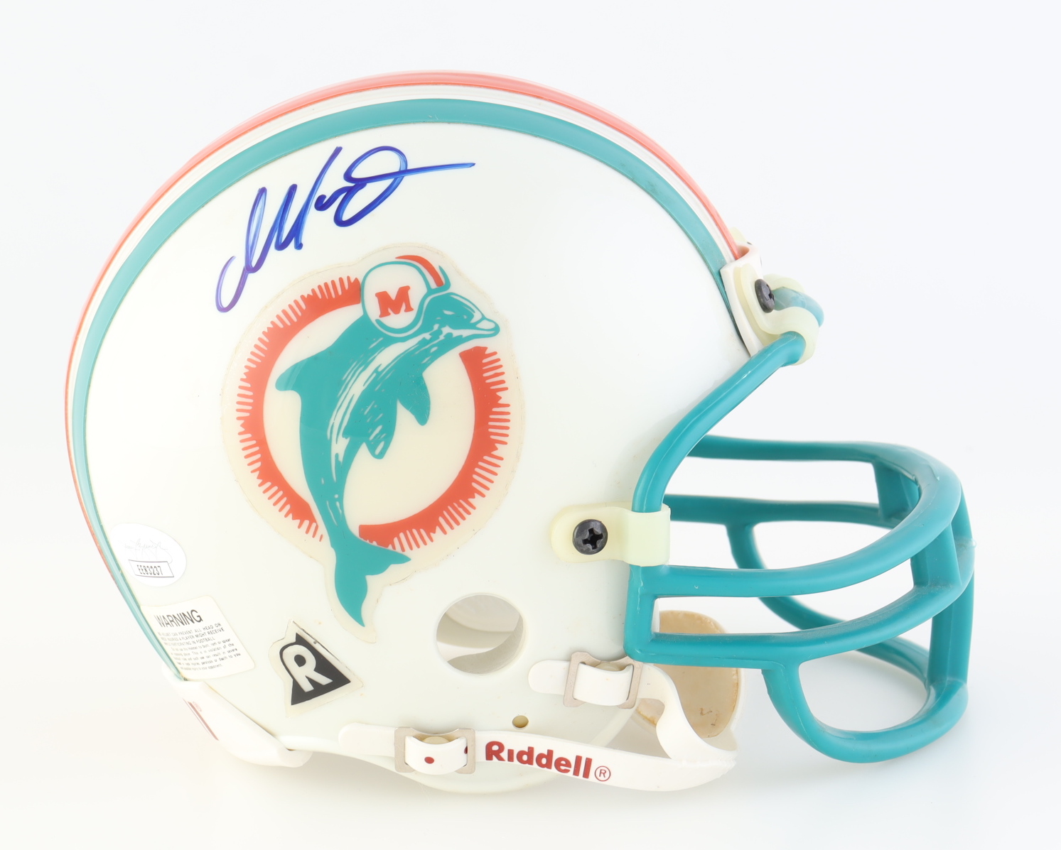 Riddell Miami Dolphins throwback mini helmet. Hand-signed by Dan Marino (HOF).