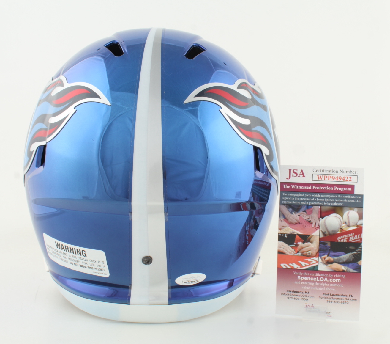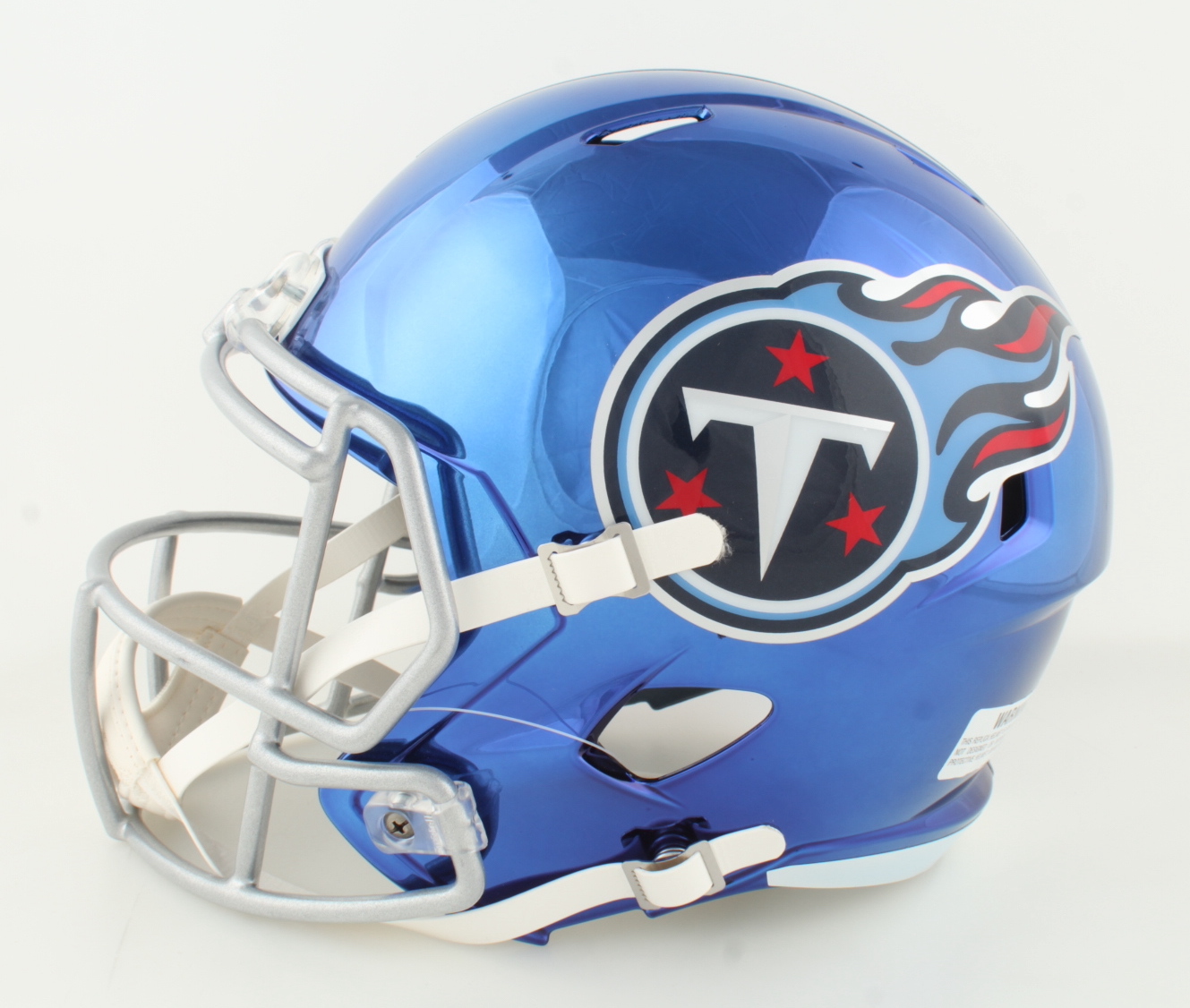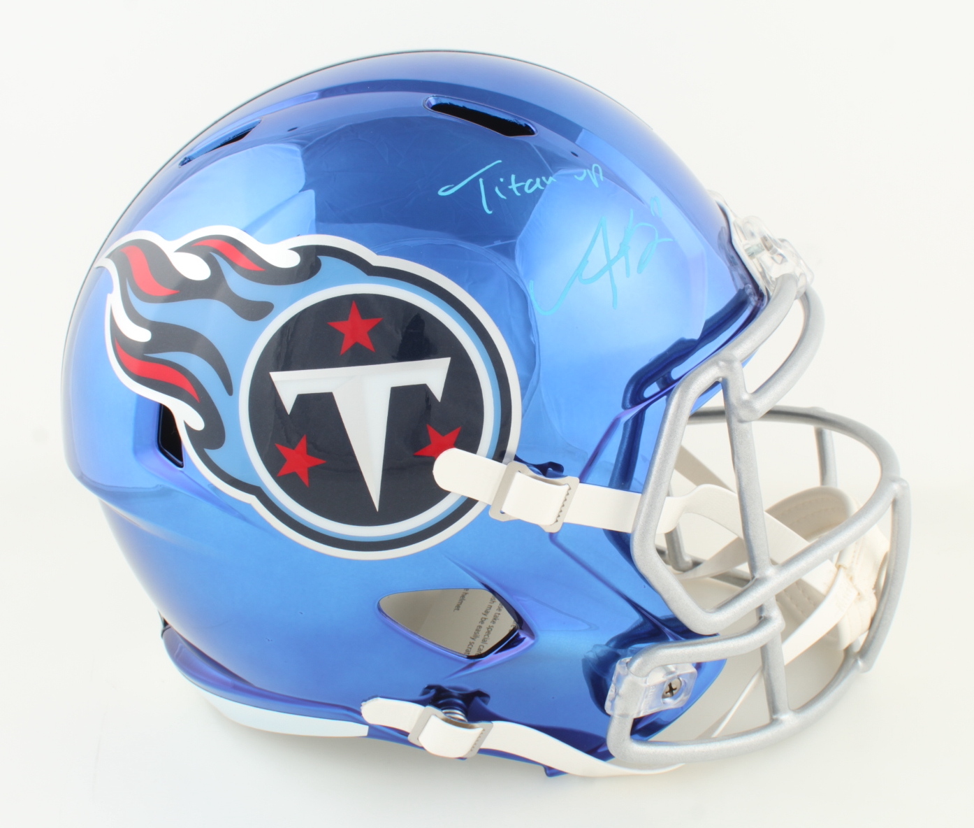 Riddell Tennessee Titans full-size replica Chrome Alternate Speed helmet. Hand-signed and inscribed by A.J. Brown.