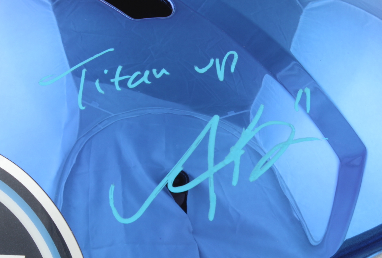 A.J. Brown Signed Titans Full-Size Chrome Alternate Speed Helmet Inscribed "Titan Up" (JSA)