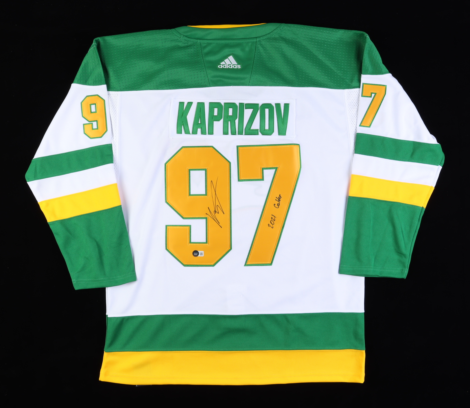 Kirill Kaprizov Signed Wild Jersey Inscribed "2021 Caldor" (Beckett)