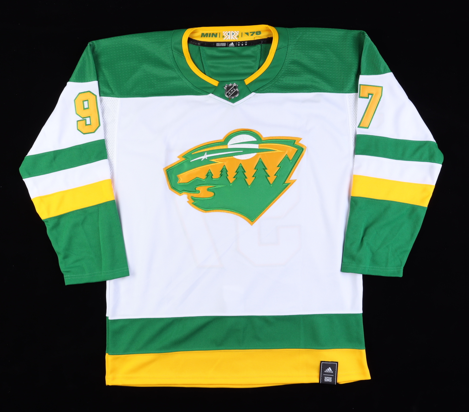 Adidas on-ice style Minnesota Wild jersey. Everything is sewn on, size 52. Hand-signed and inscribed by Kirill Kaprizov (Minnesota Wild).
