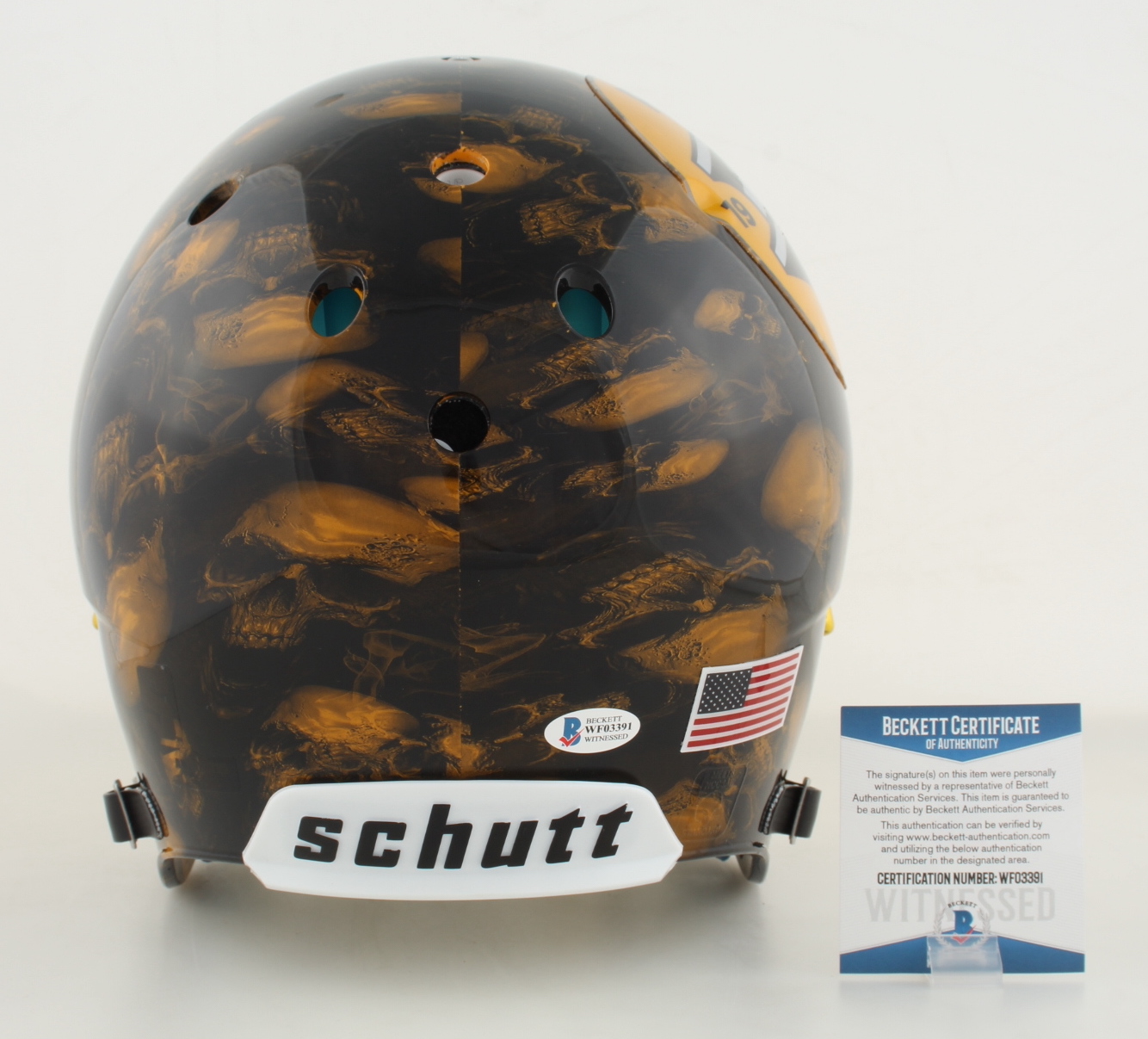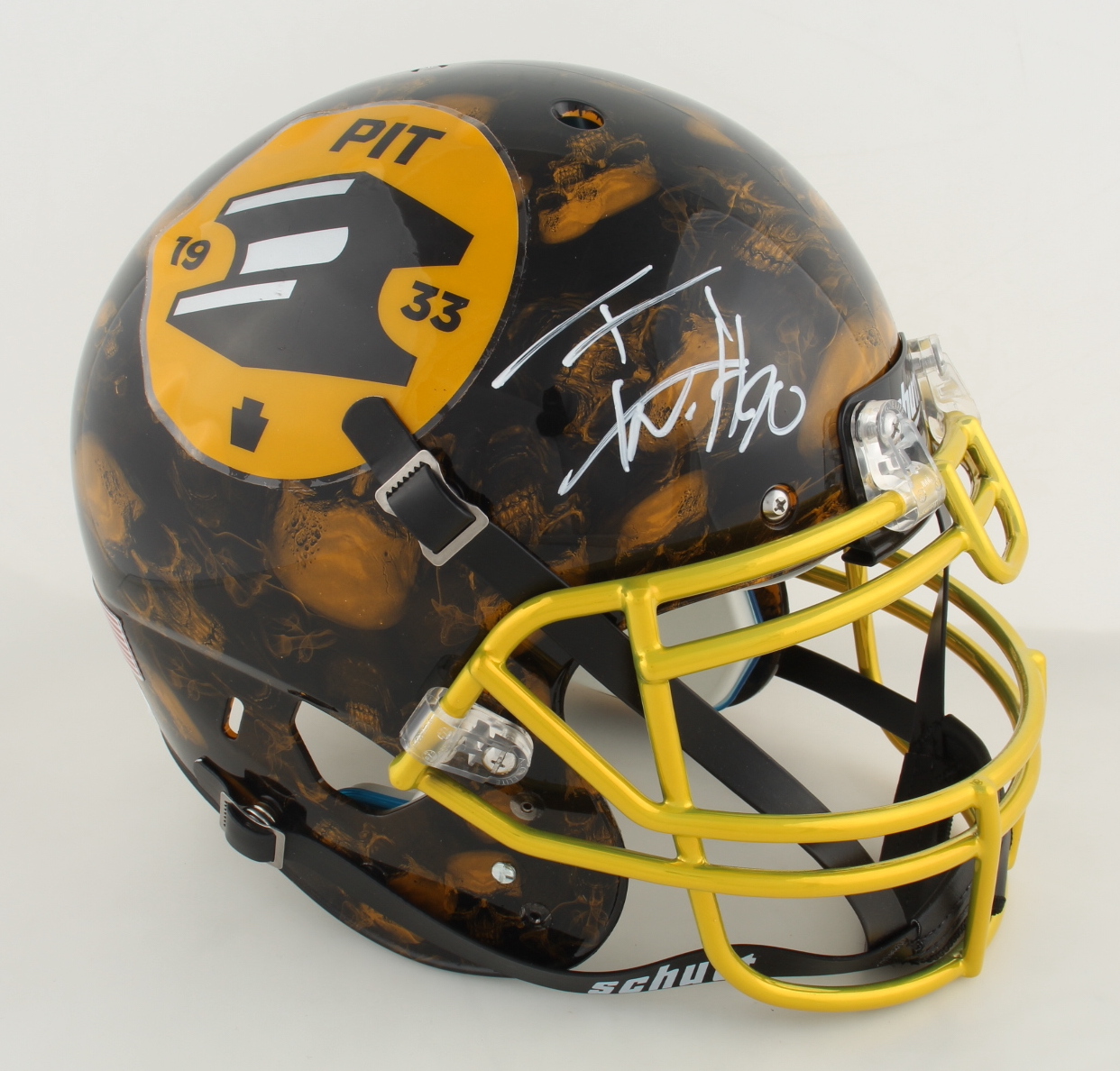 Schutt full-size authentic on-field custom helmet. Hand-signed by T.J. Watt.