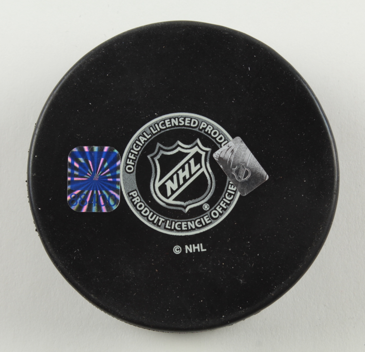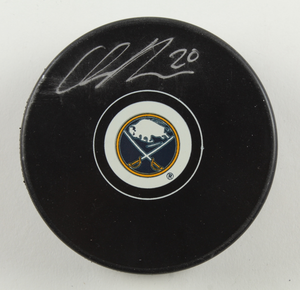 Buffalo Sabres logo hockey puck. Hand-signed by Cody Eakin.