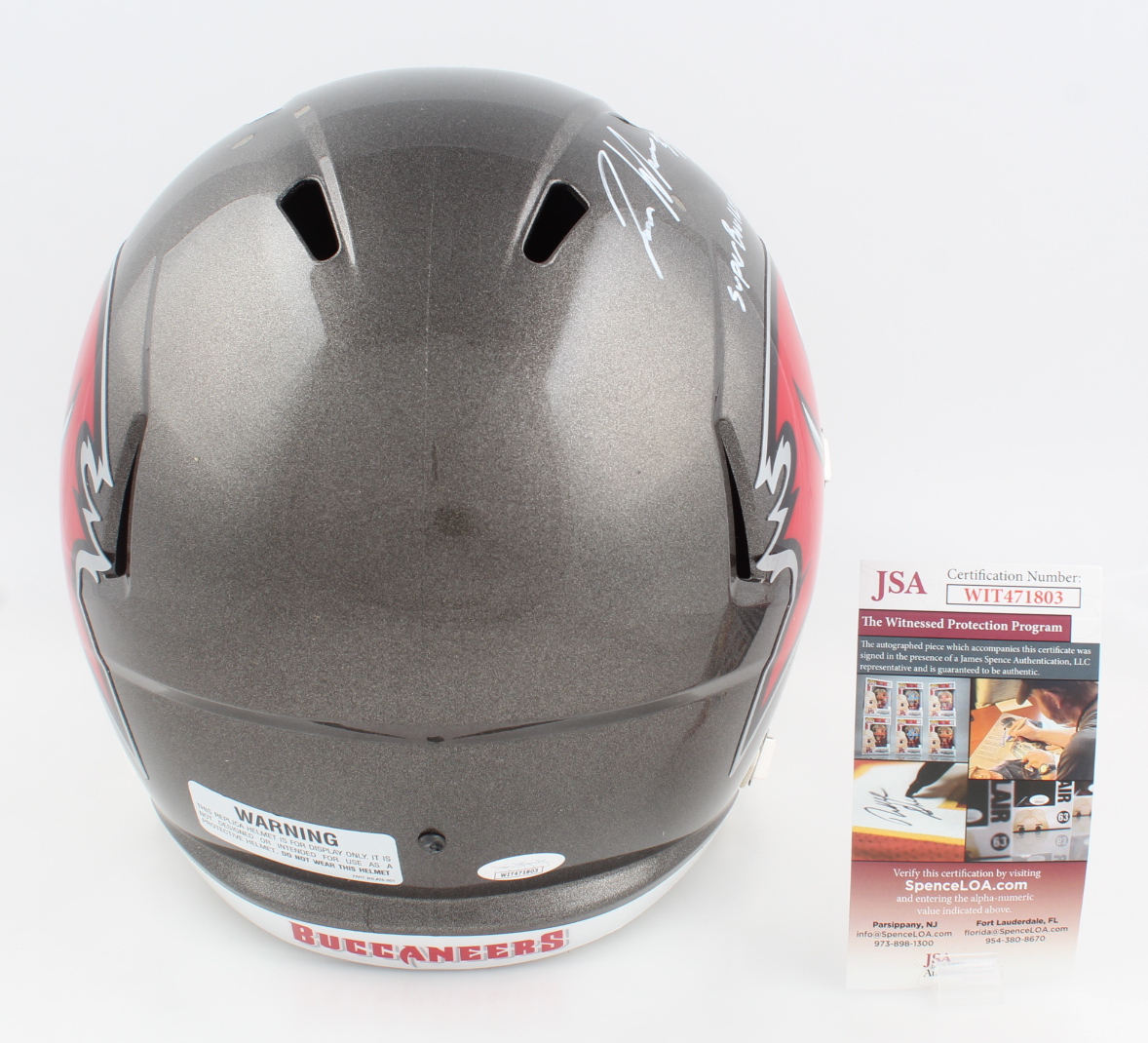 Riddell Tampa Bay Buccaneers full-size replica speed helmet. Has been hand-signed and inscribed by Jordan Whitehead.