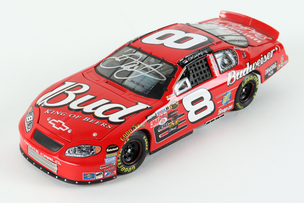 Premium die-cast car hand-signed on the windshield by Dale Earnhardt Jr. The car is limited edition to just 46,884 produced.