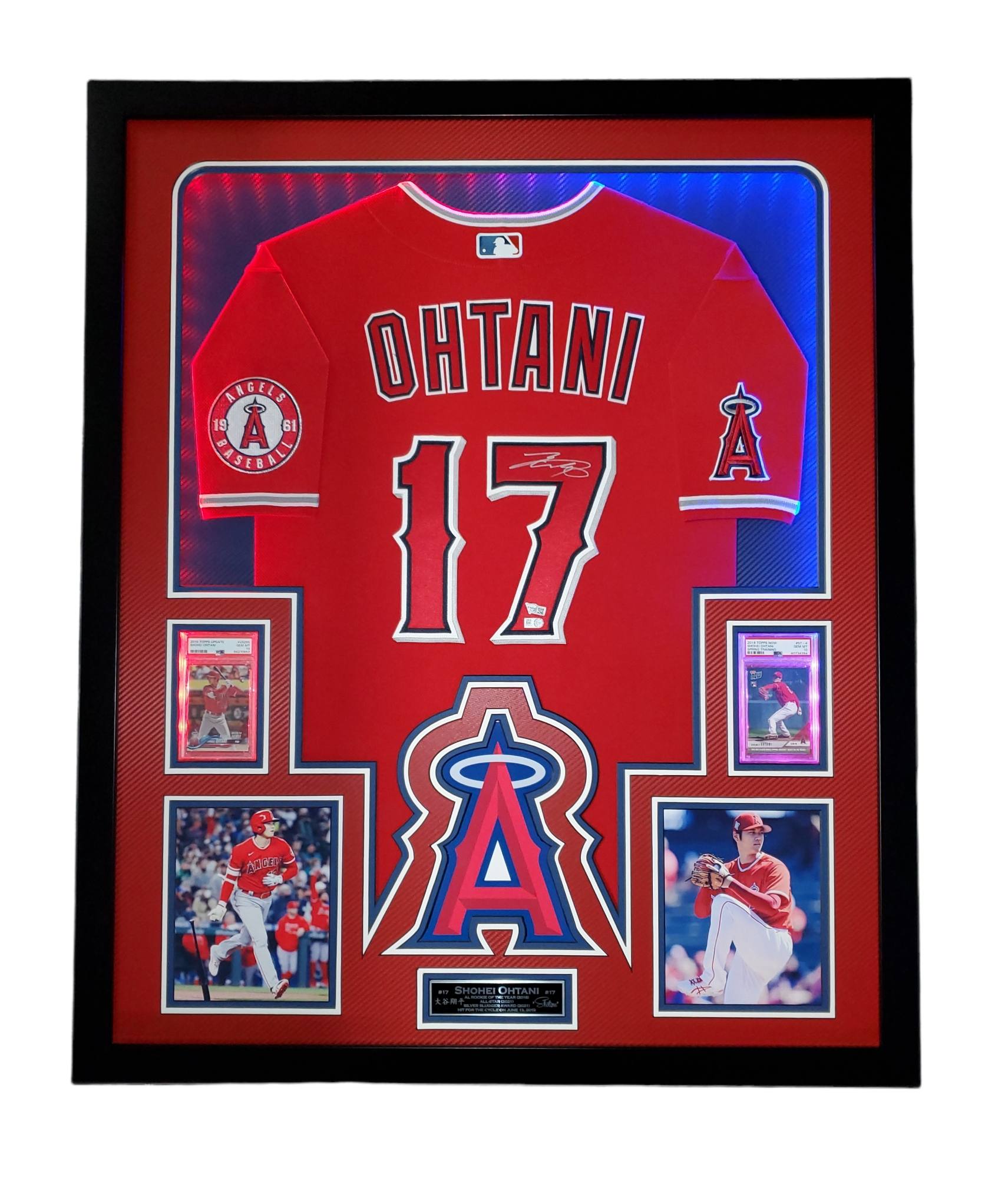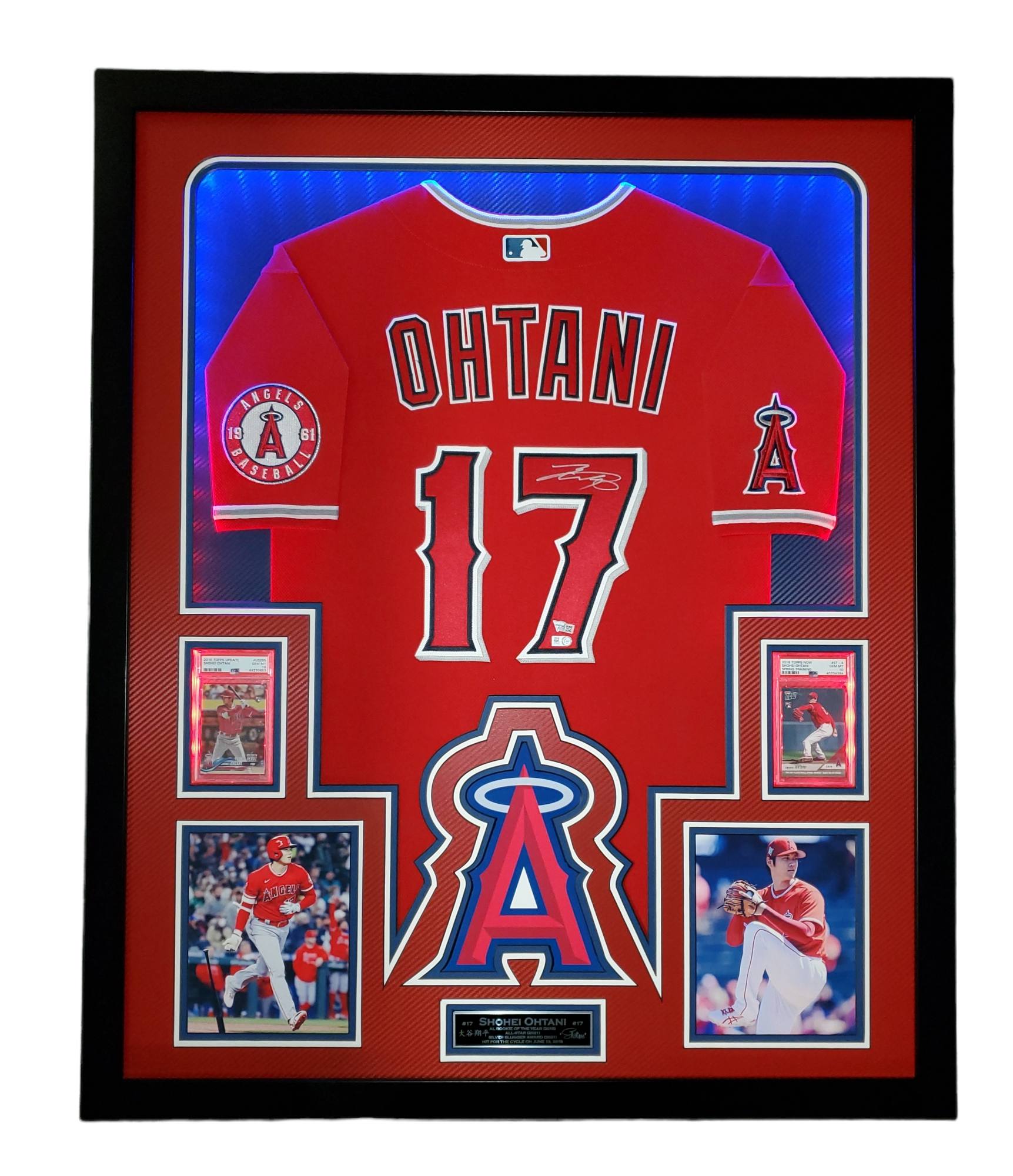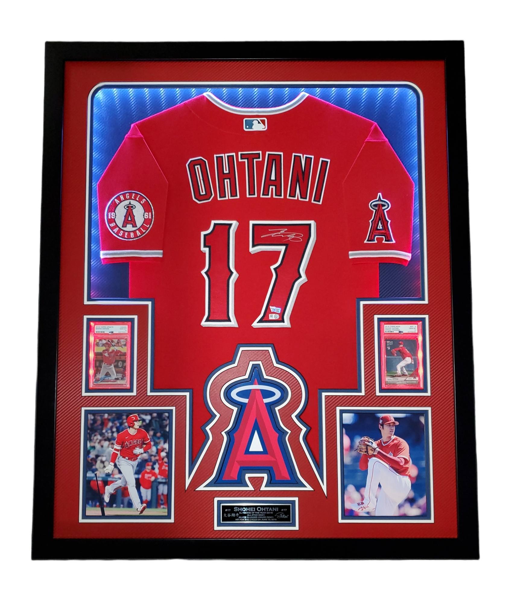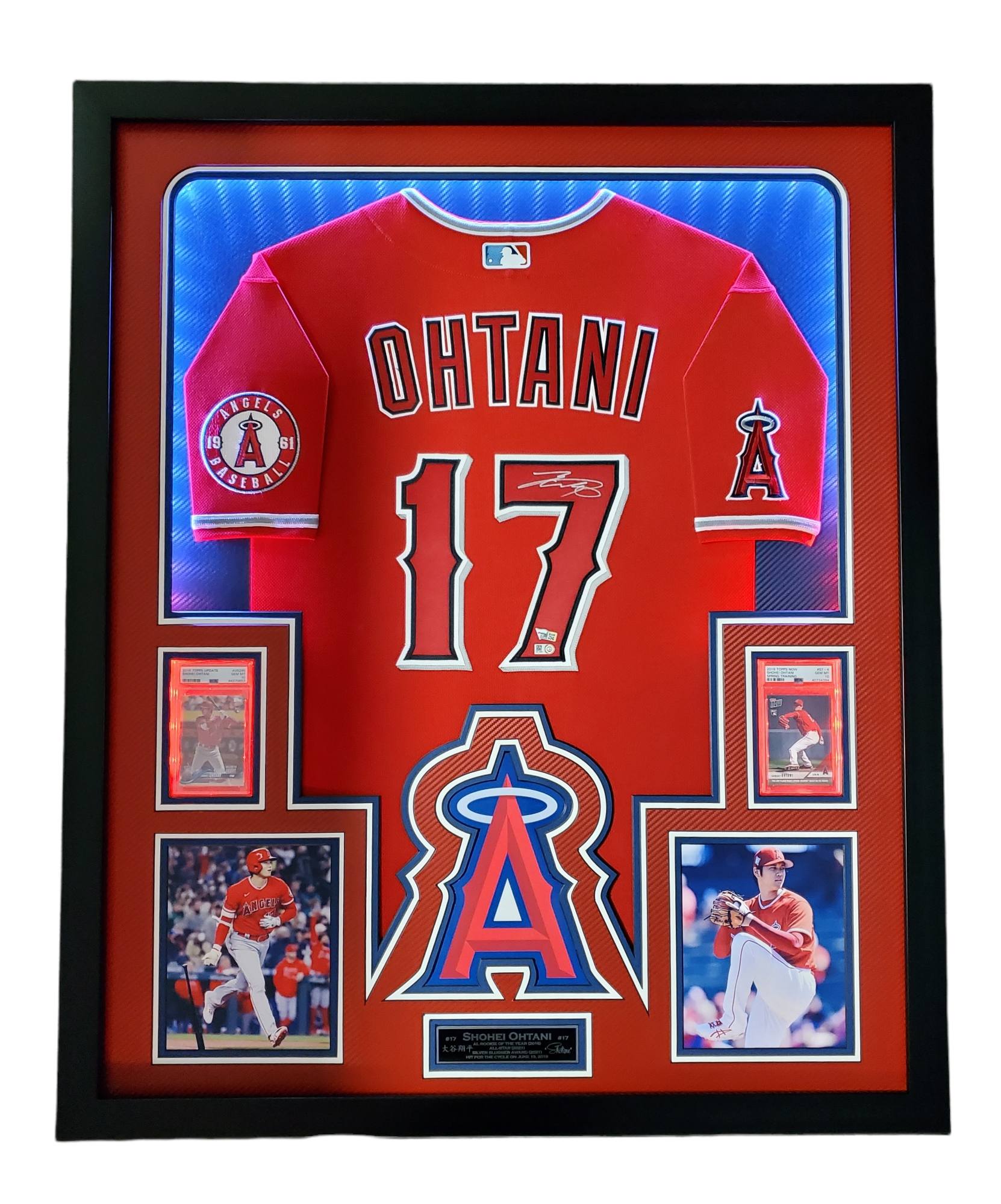 Shohei Ohtani Signed Angles 34x42 Custom Framed LED Backlit Jersey Display With (2) PSA 10 RC's (Fanatics & MLB)