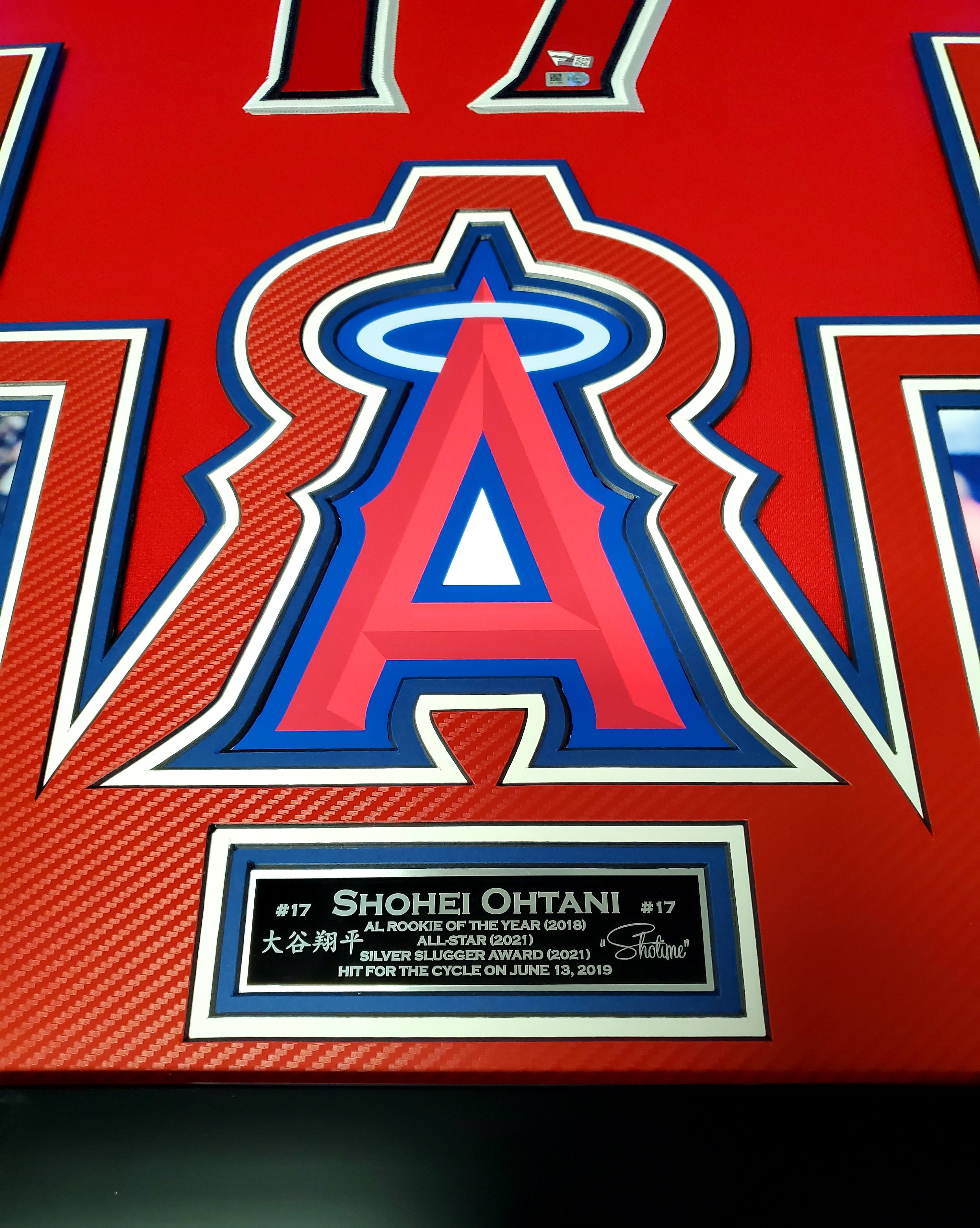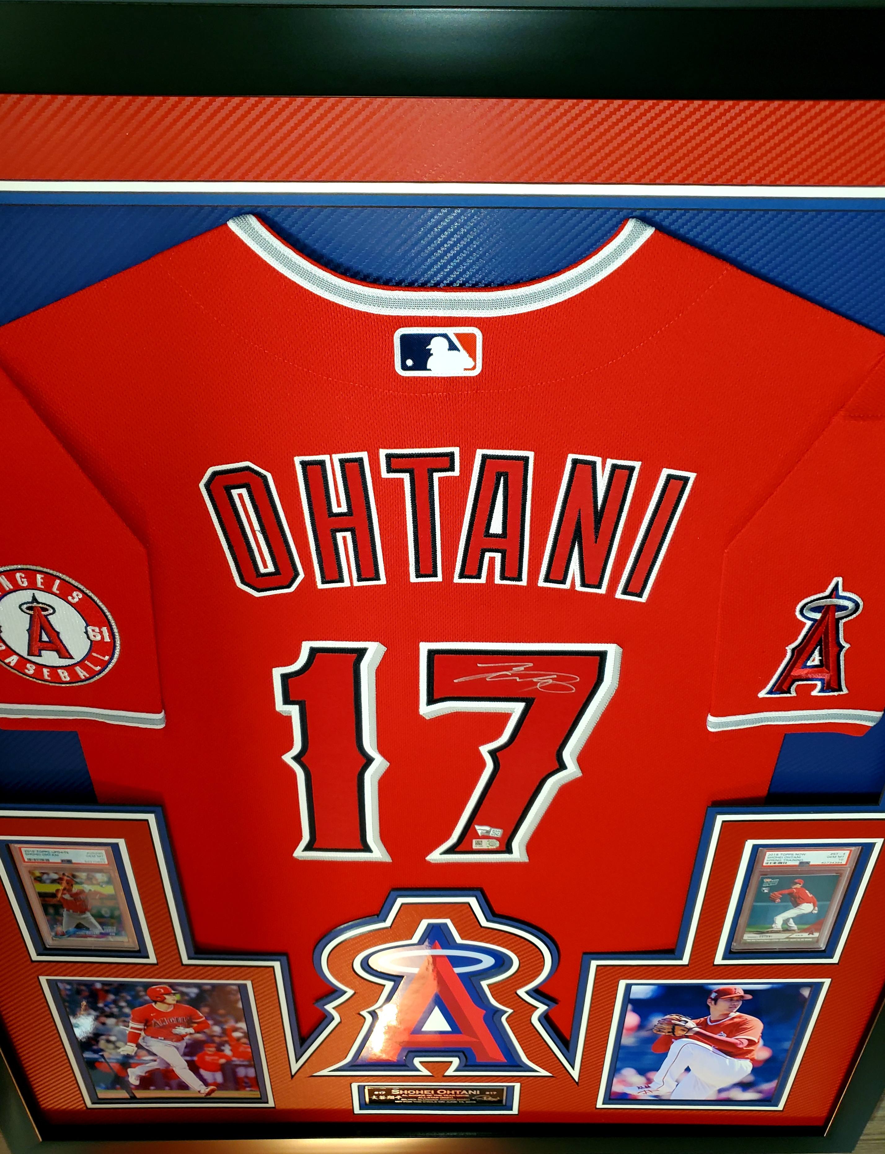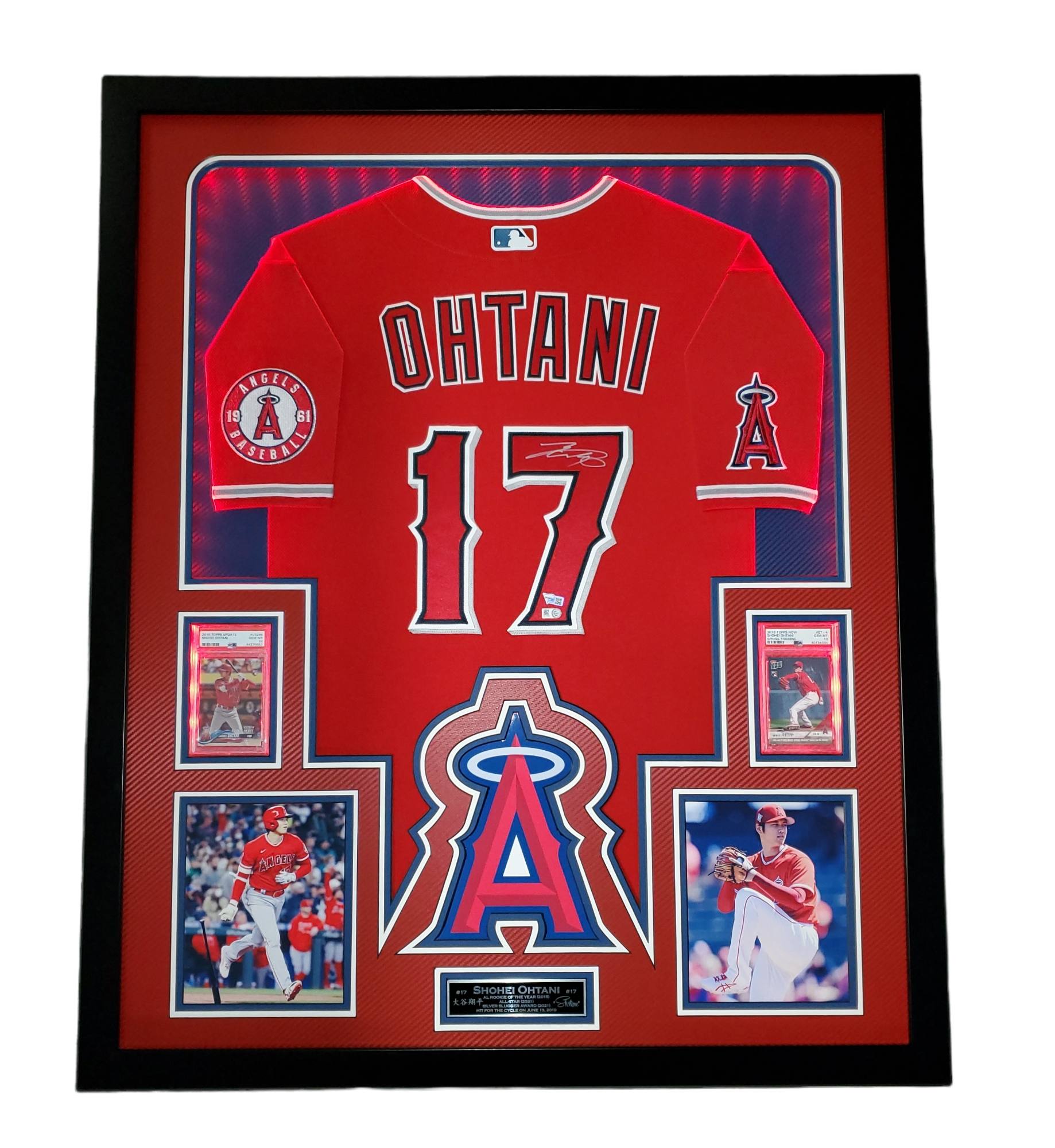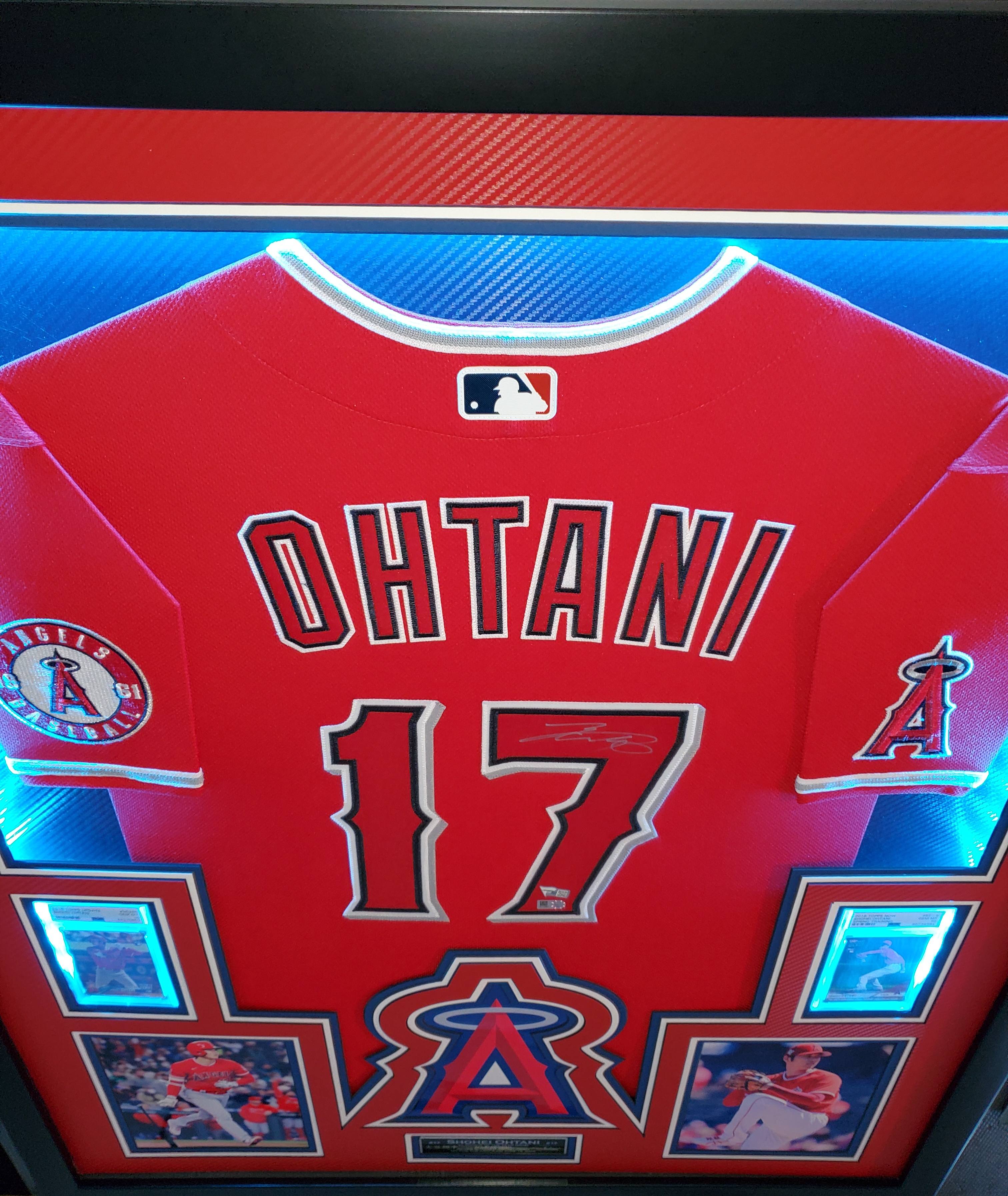 Shohei Ohtani Signed Angles 34x42 Custom Framed LED Backlit Jersey Display With (2) PSA 10 RC's (Fanatics & MLB)