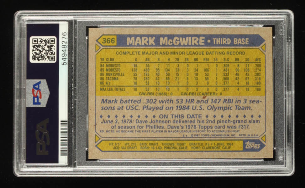 Mark McGwire 1987 Topps #366 (PSA 8)