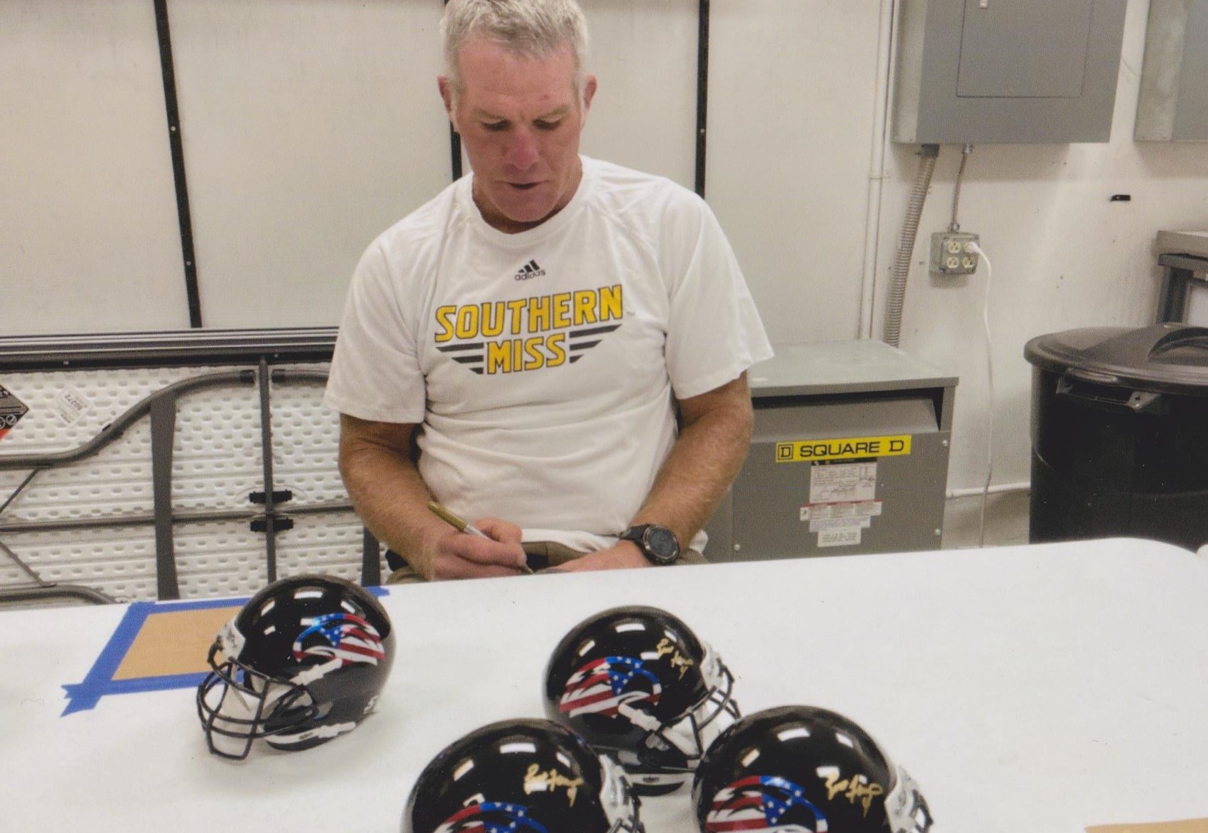 Schutt Southern Miss Golden Eagles mini helmet. Hand-signed by Brett Favre (HOF).
