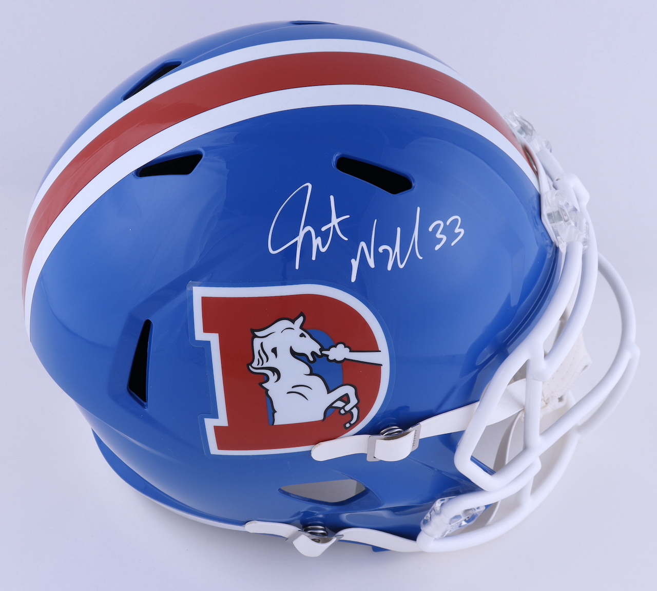 Riddell Denver Broncos Full-Size Replica Speed Helmet. Hand-signed by Javonte Williams.