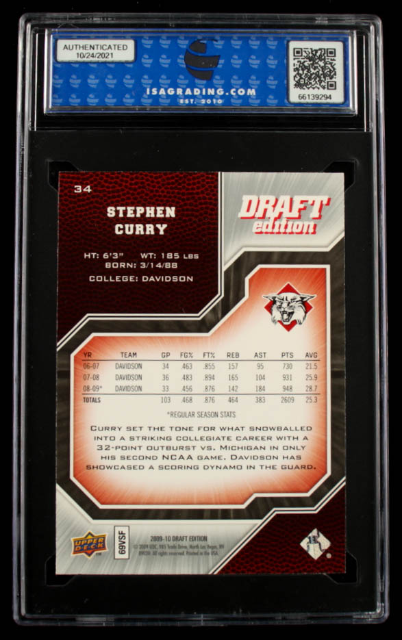 Card has been graded ISA 10. Please see photos for more details regarding the condition of the card (Davidson Wildcats).