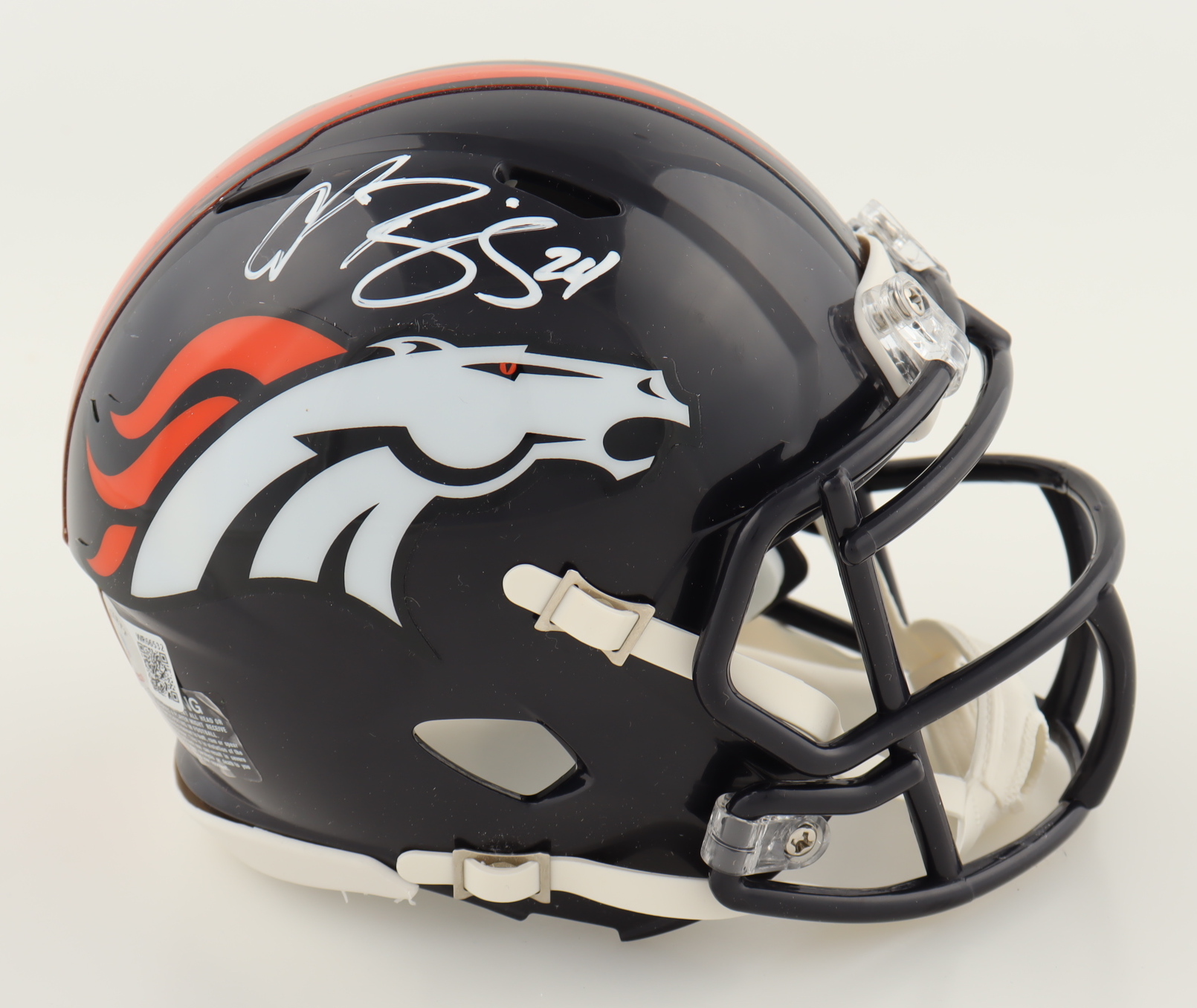 Riddell Denver Broncos Speed mini helmet. Hand-signed by Champ Bailey (HOF).