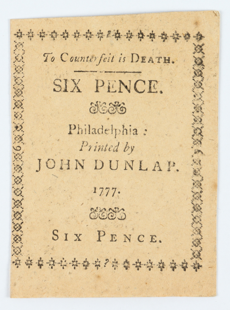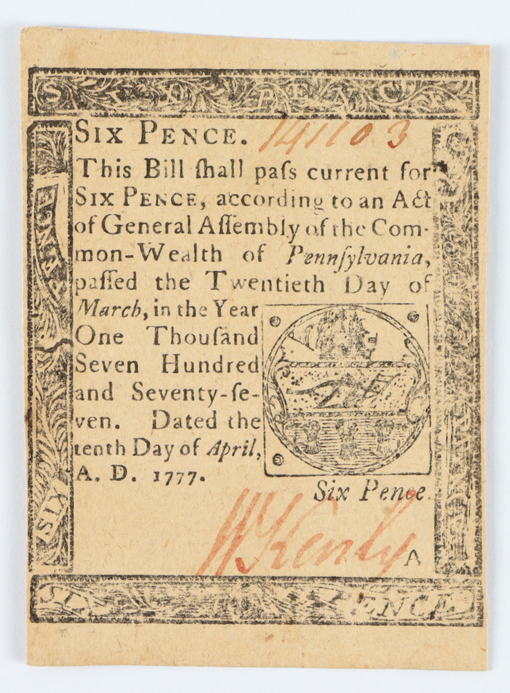 1777 Six Pence - Pennsylvania - Colonial Currency Note