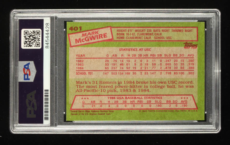 Mark McGwire Signed 1985 Topps OLY #401 RC (PSA)
