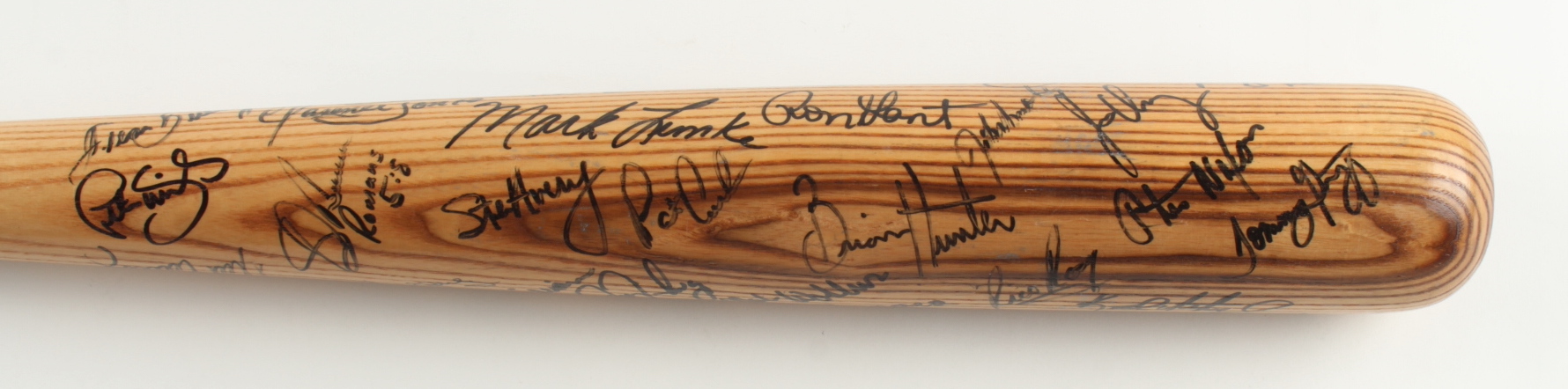Louisville Slugger Powerized Player Model Baseball Bat. Team-signed by Tom Glavine, Bobby Cox, John Smoltz, Terry Pendleton, Sid Bream, Jeff Treadway, Rafael Belliard, Lonnie Smith, Ron Gant, David Justice, Otis Nixon, Jeff Blauser, Mark Lemke, Brian Hunter and (21) others.