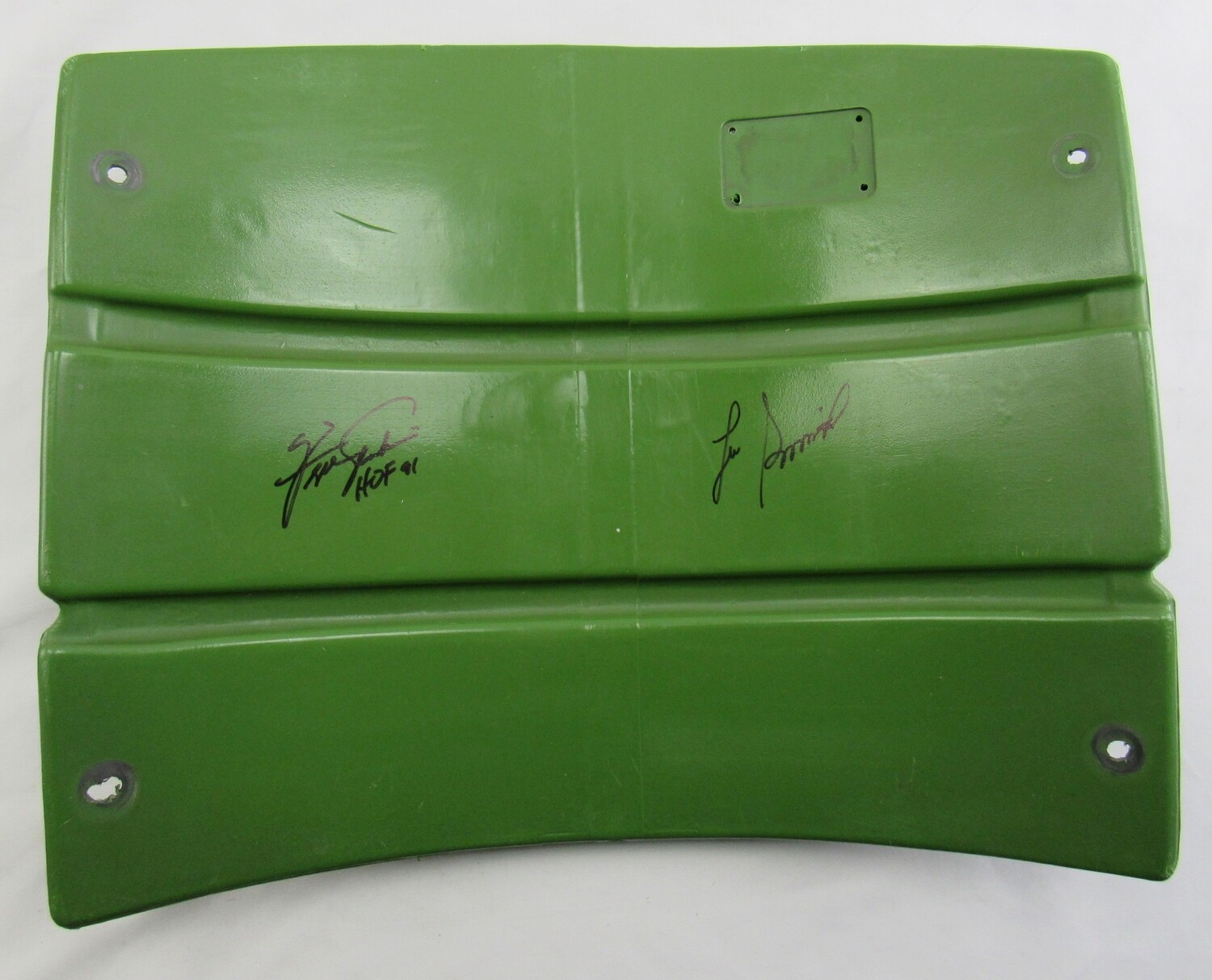 Original Wrigley Field stadium seat back. Hand-signed and inscribed by Fergie Jenkins (Chicago Cubs, HOF) and Lee Smith (Chicago Cubs, HOF).