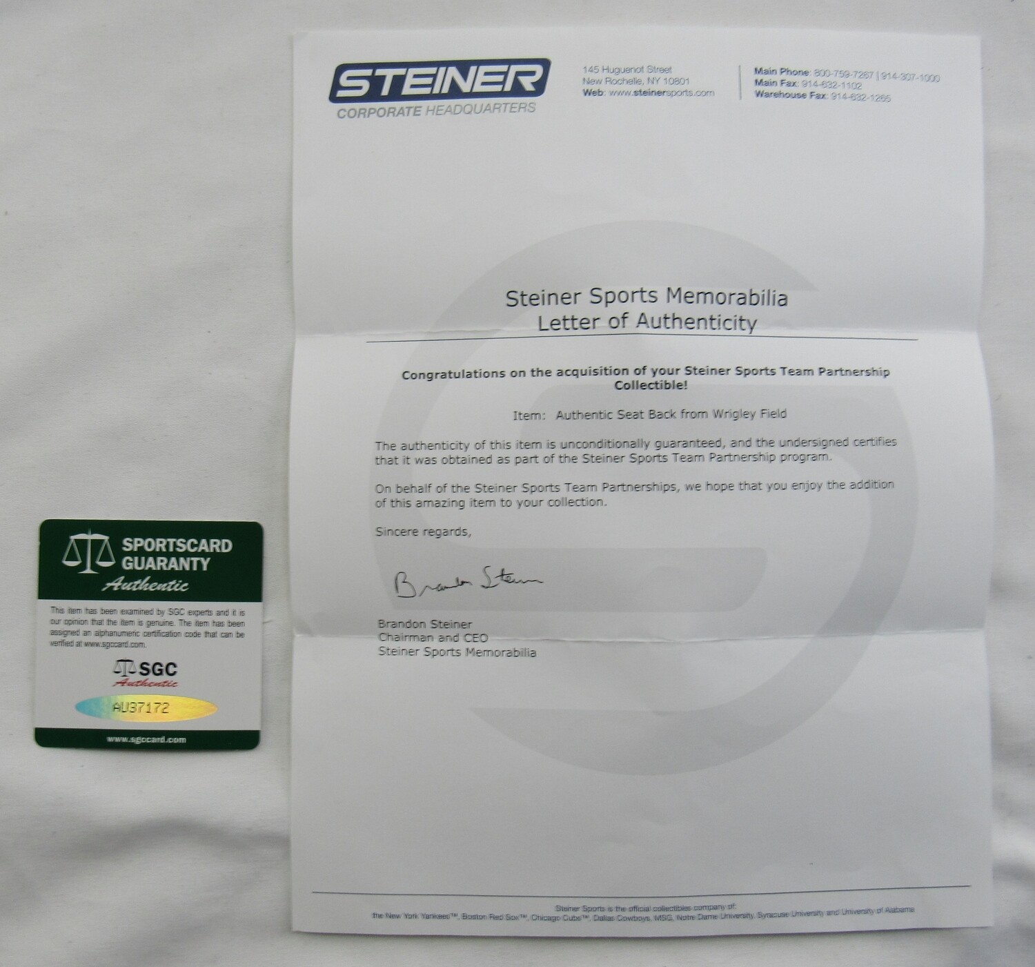 The lot / autograph(s) includes an official Steiner Sports hologram and matching COA, as well as an official Sportscard Guaranty (SGC) hologram and matching COA for authenticity purposes.