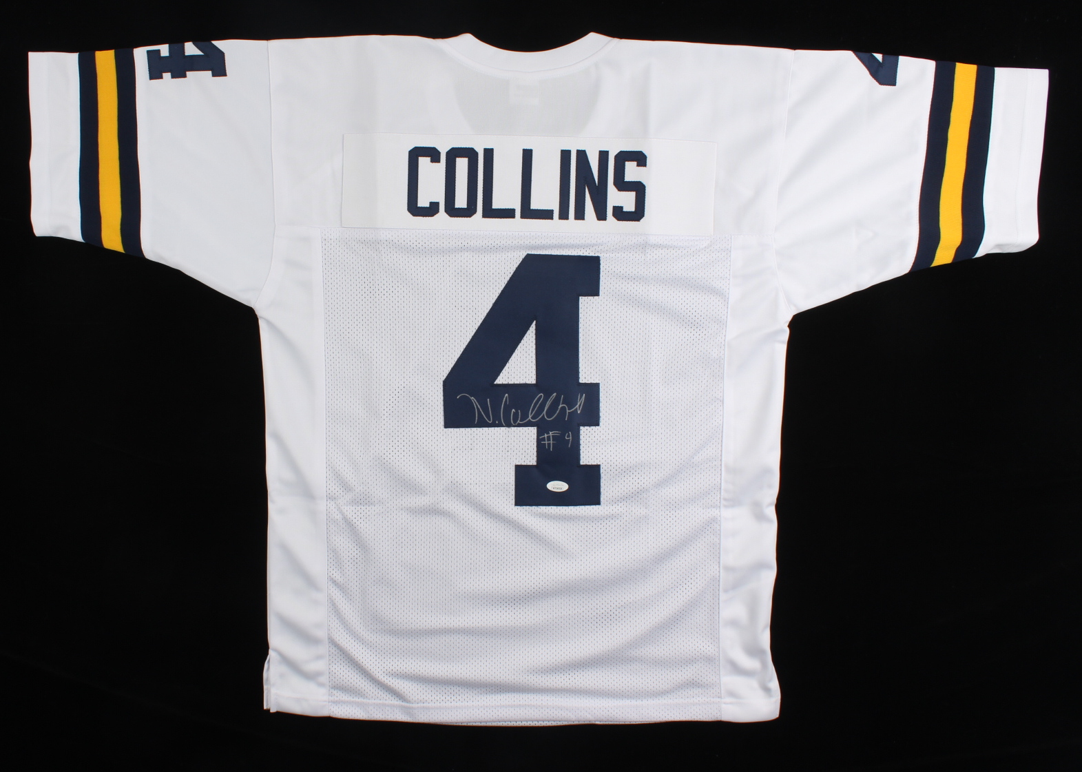 Custom on-field style jersey. Everything is sewn on, size XL. Hand-signed by Nico Collins.
