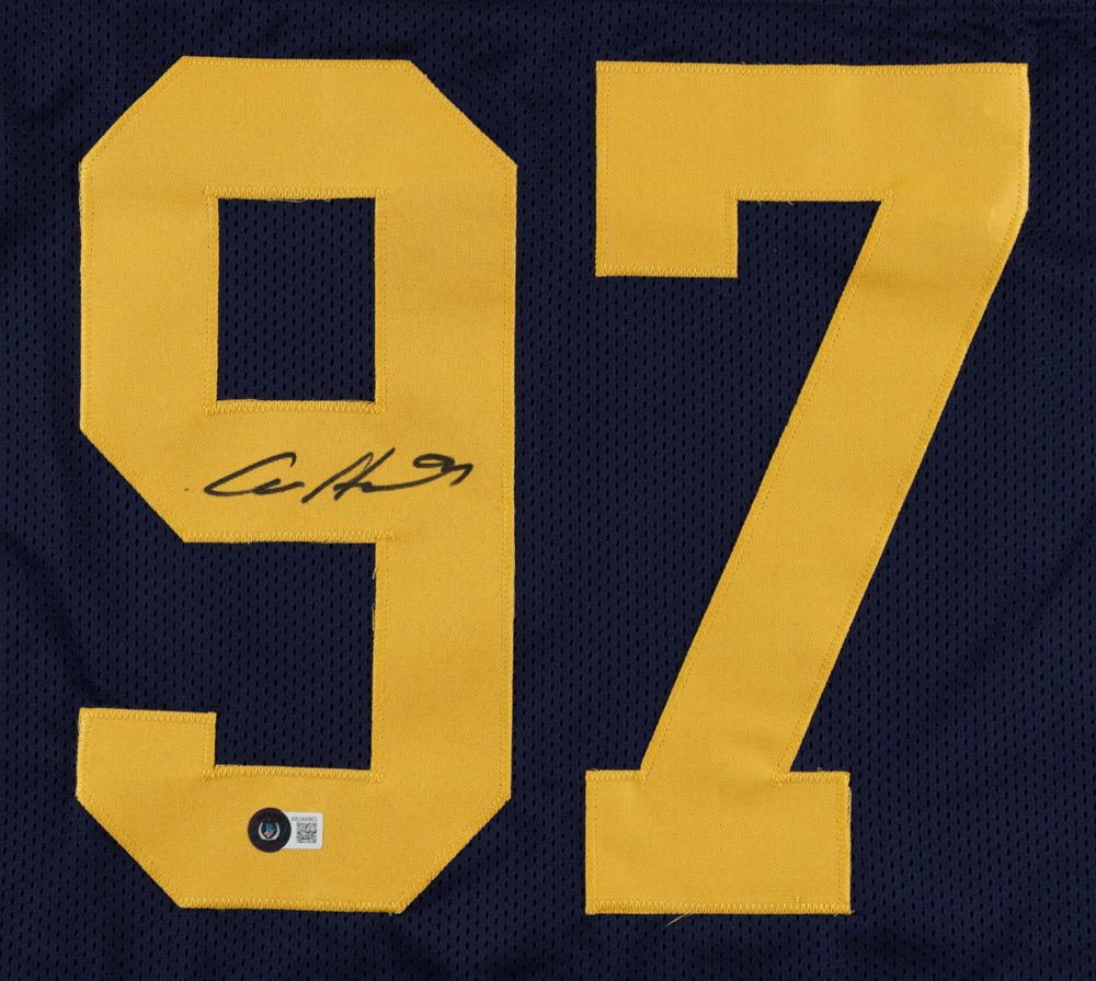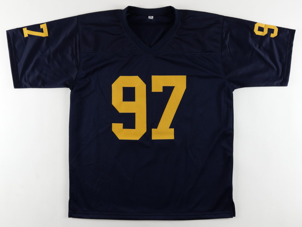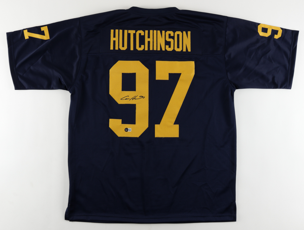 Custom on-field style jersey. Everything is sewn on, size XL. Hand-signed by Aidan Hutchinson.