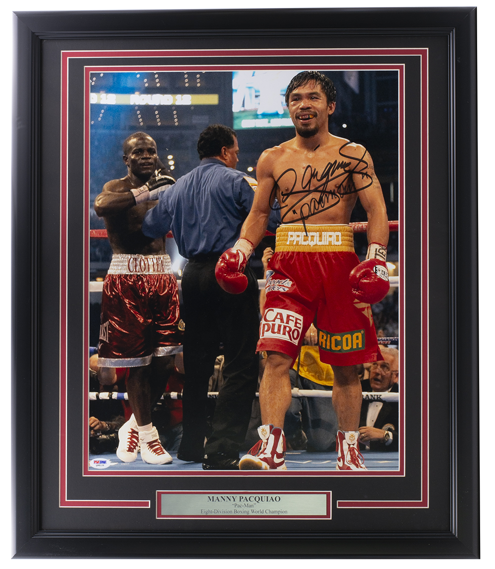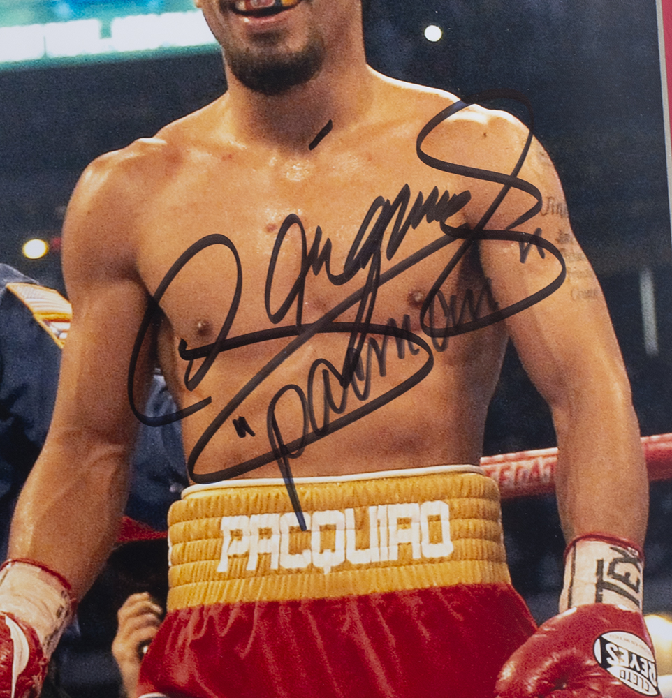 Custom framed photo measures 22" x 27" in size and has been hand-signed by Manny Pacquiao.