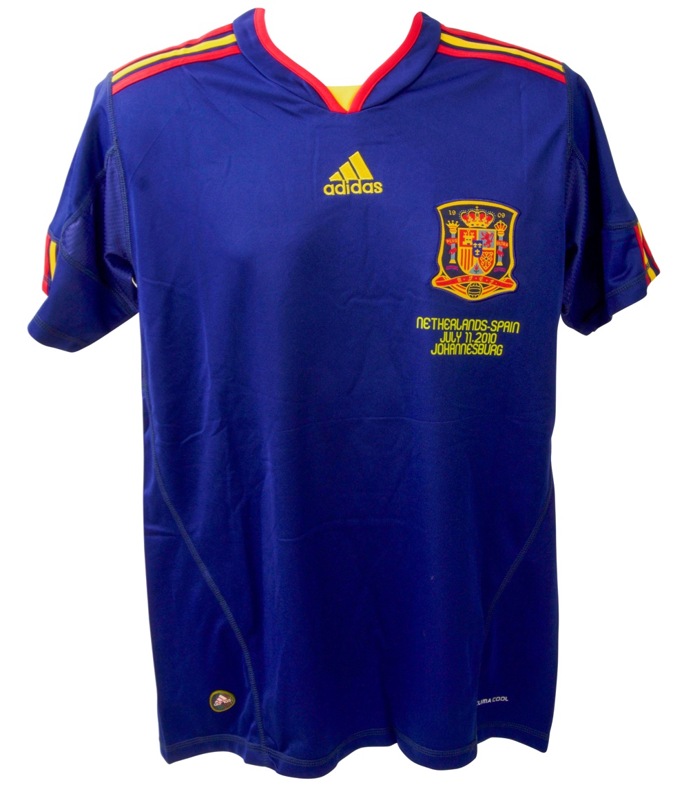 Adidas on-field style jersey. Everything printed on, size XL. Hand-signed by David Villa (Netherlands-Spain Football Team).