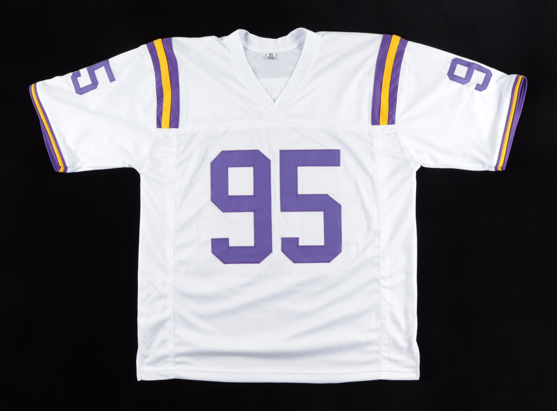 Custom on-field style jersey. Everything is sewn on, size XL. Hand-signed and inscribed by Kyle Williams.