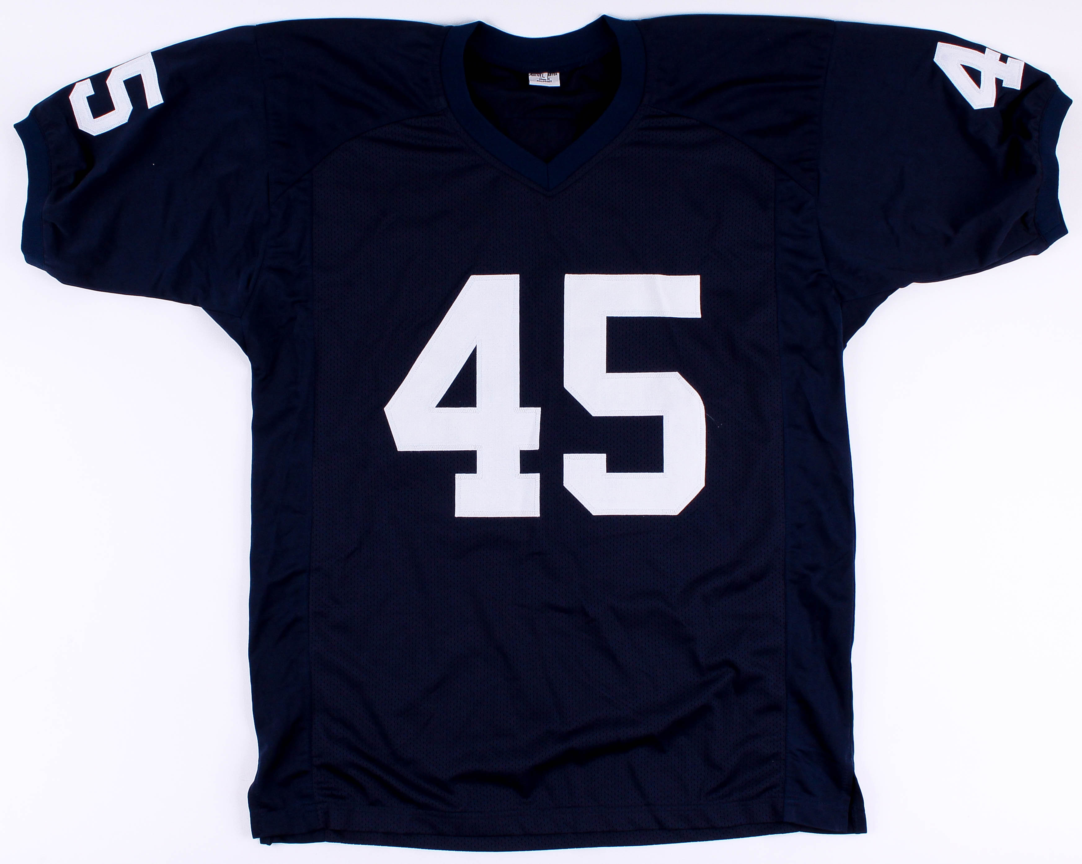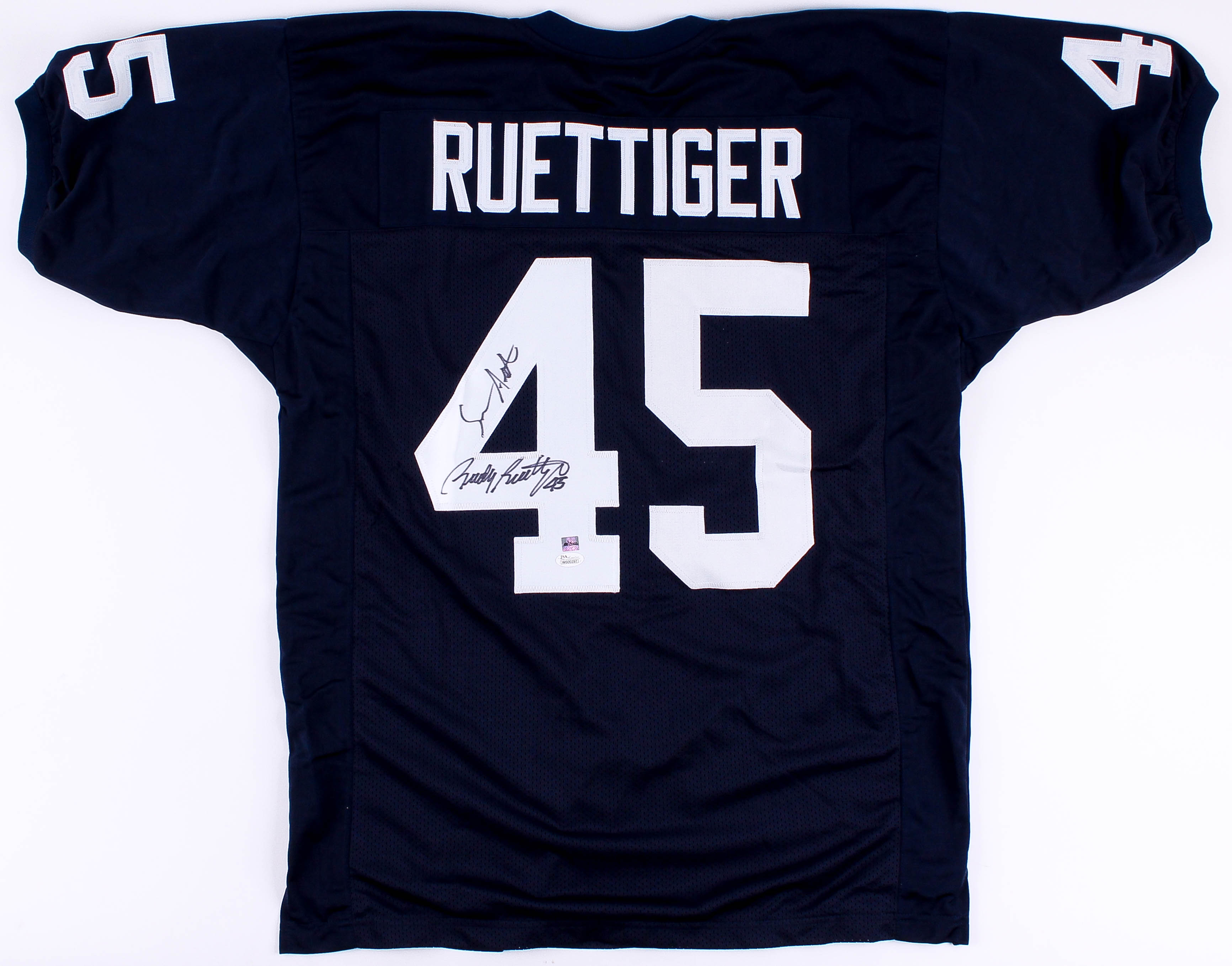 Custom on-field style jersey. Everything is sewn on, size L. Hand-signed in black felt-tip pen by Rudy Ruettiger and Sean Austin.