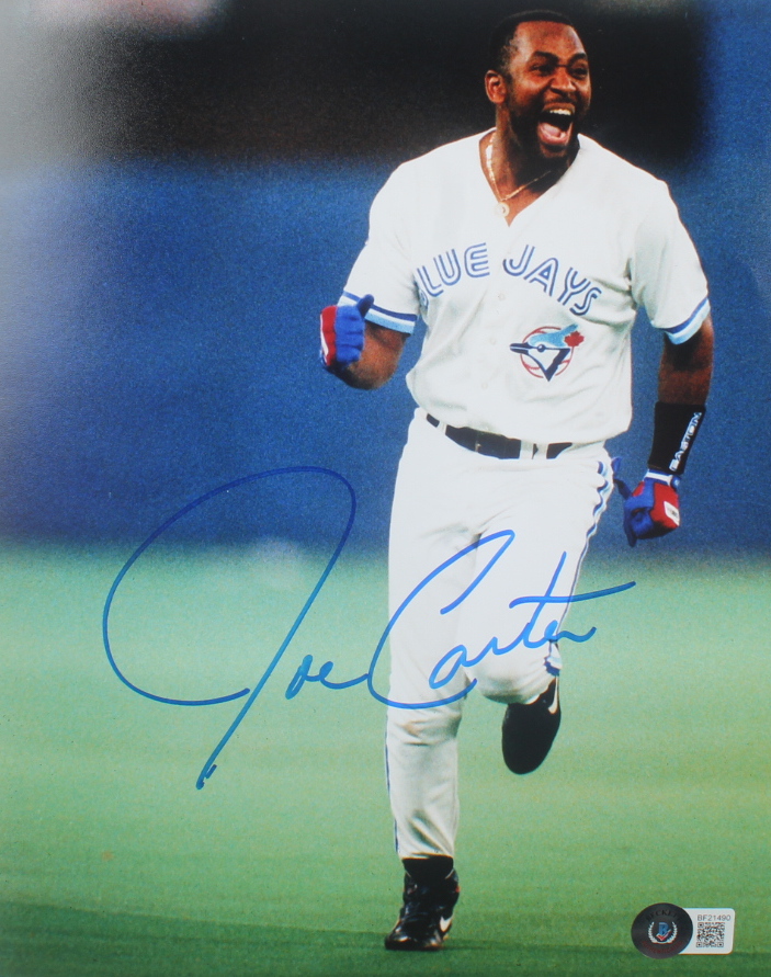 Photo measures 8" x 10" in size and has been hand-signed by Joe Carter (Toronto Blue Jays).