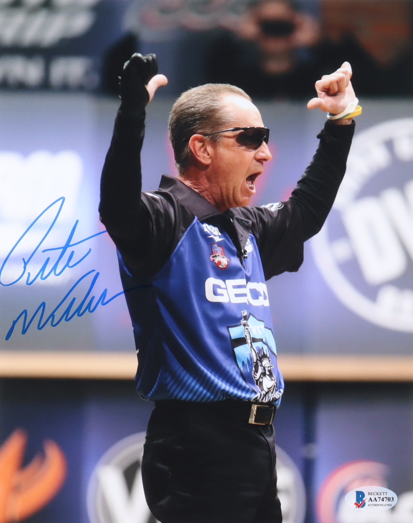 Photo measures 8" x 10" in size. Hand-signed by Pete Weber (HOF).