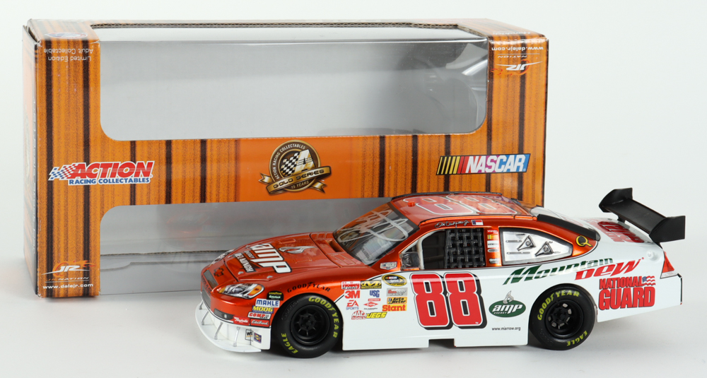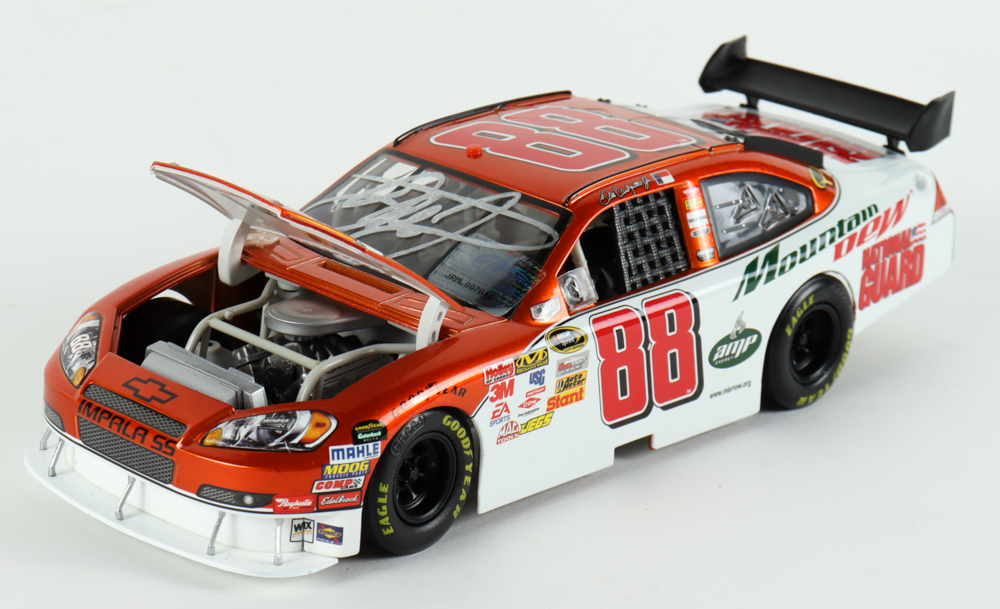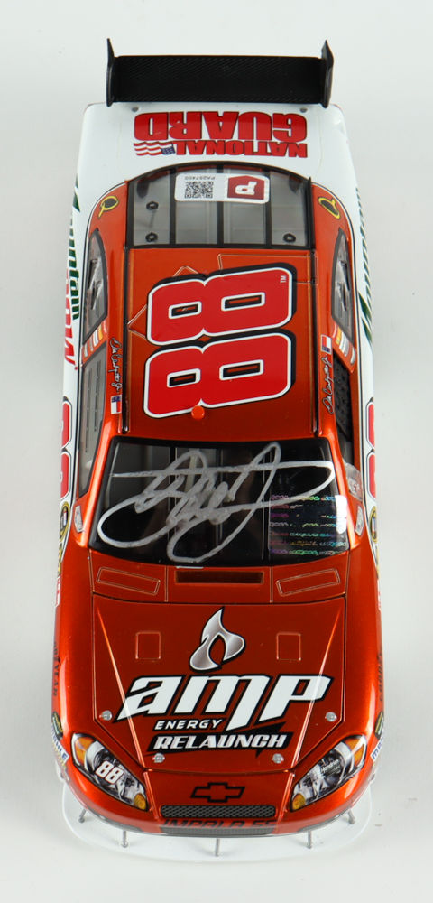 Premium die-cast car hand-signed on the windshield by Dale Earnhardt Jr. The car is limited edition and includes the original packaging.