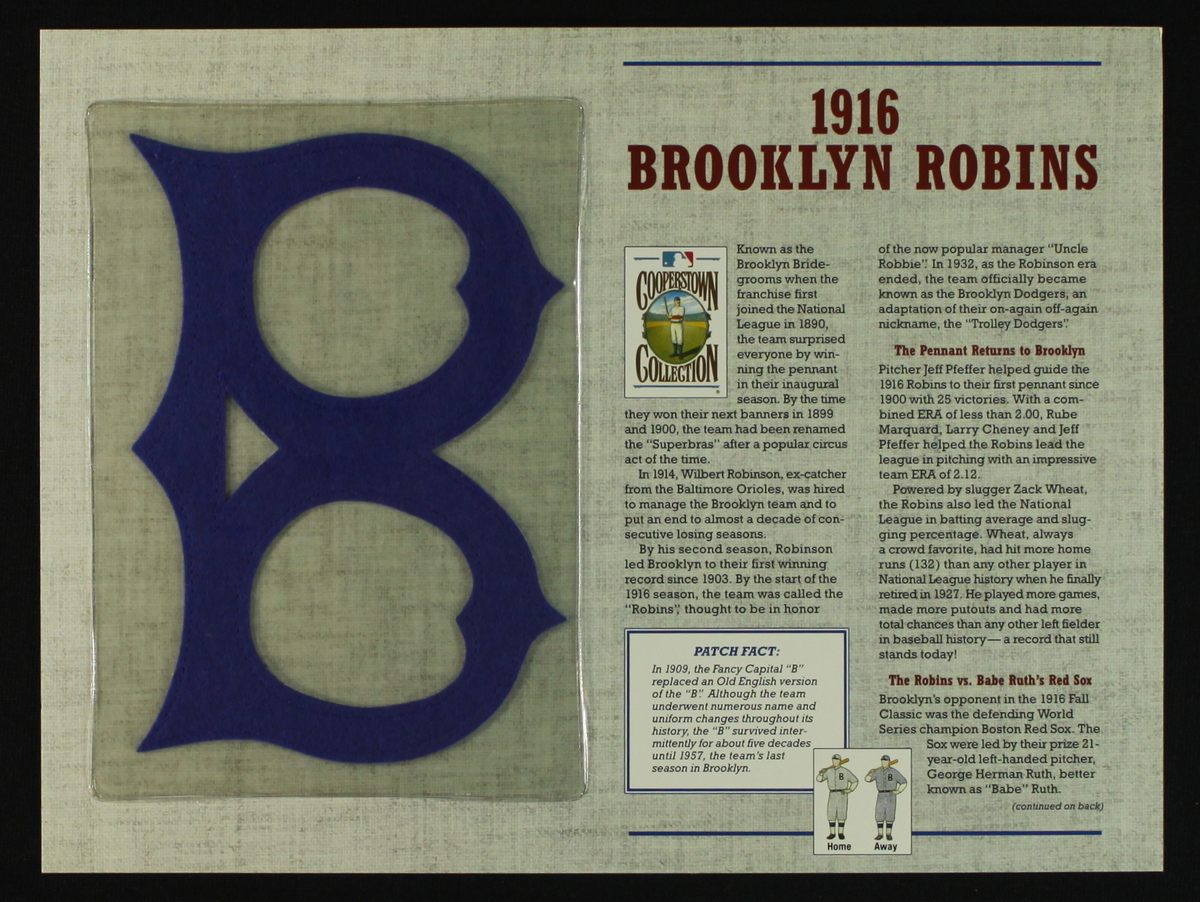 Willabee & Ward Official 1916 Brooklyn Robins 12x9 Cooperstown Collection Commemorative Patch Display