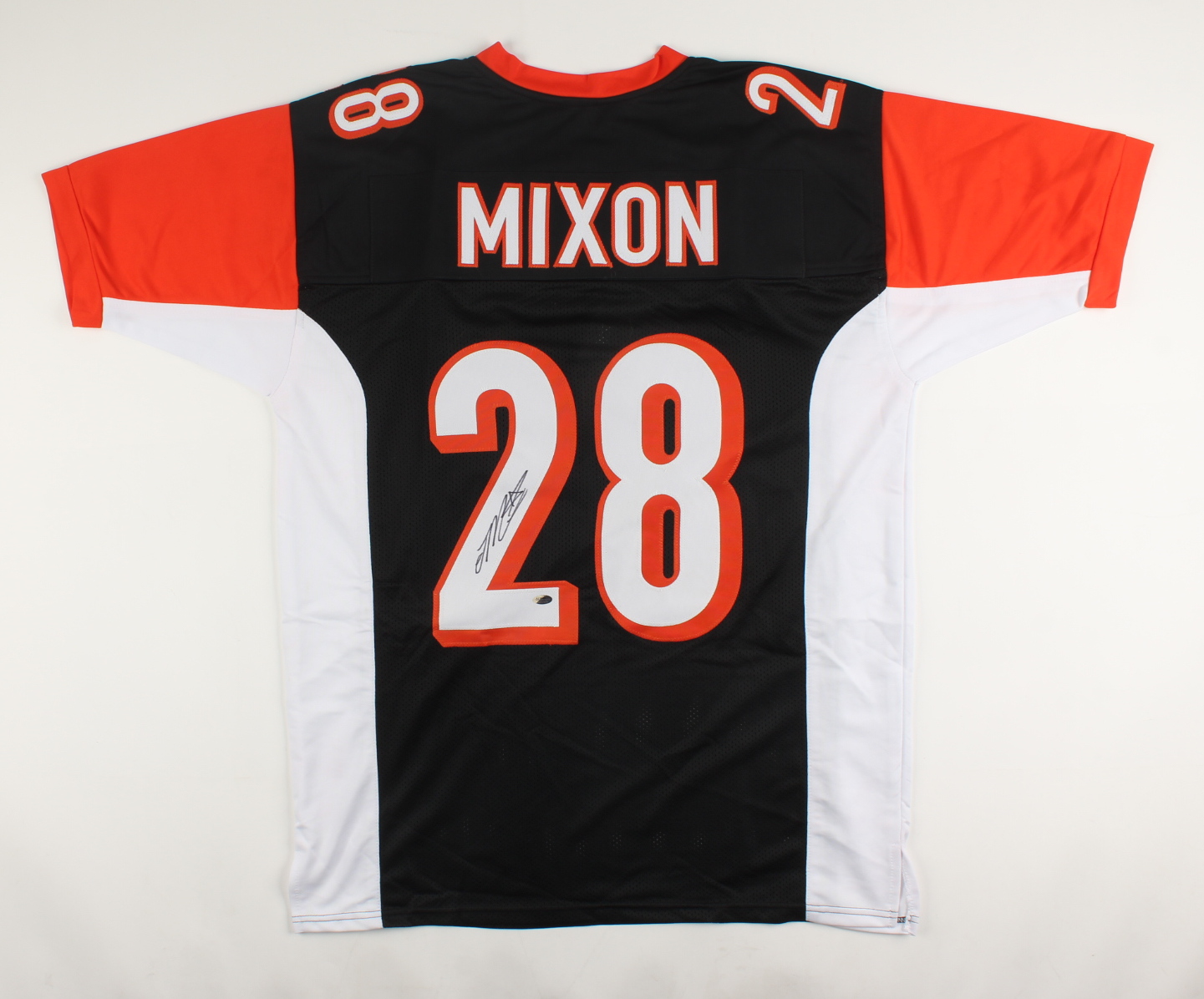 Custom on-field style jersey. Everything is sewn on, size XL. Hand-signed by Joe Mixon.
