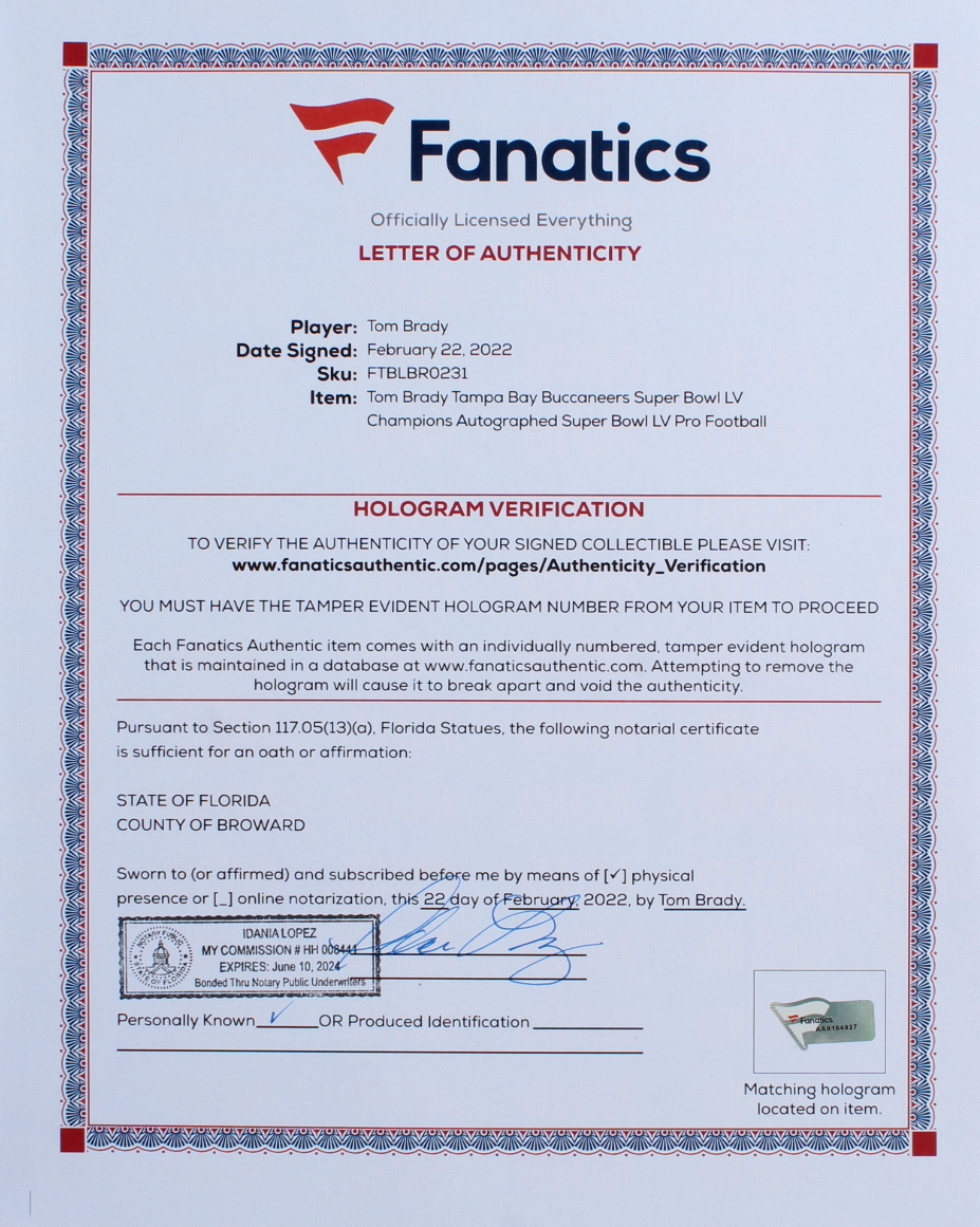 The lot / autograph(s) includes an official Fanatics Letter of Authenticity and matching hologram for authenticity purposes.