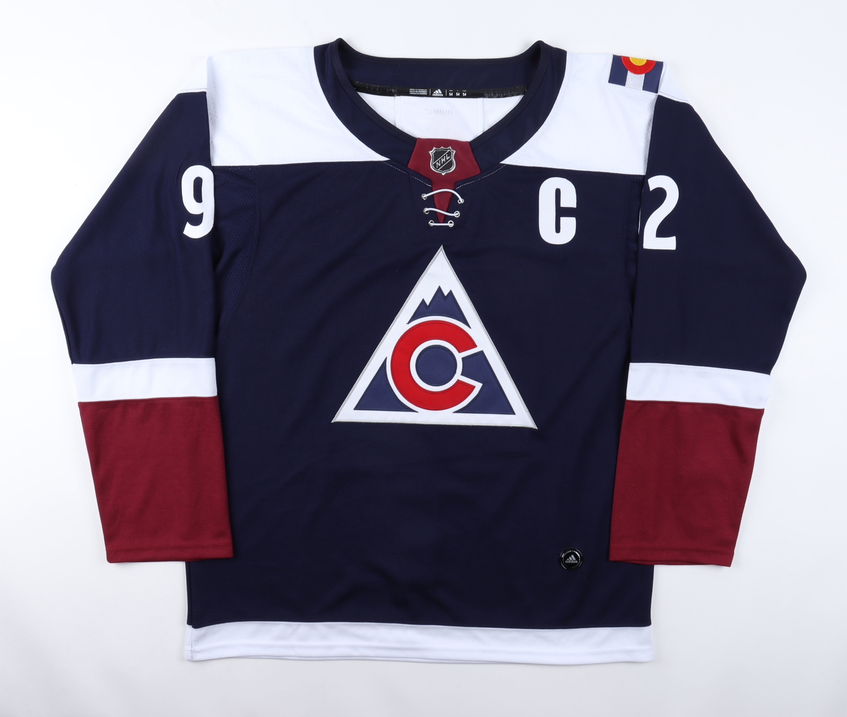 On-ice style jersey. Everything is sewn on, size 54. Hand-signed by Gabriel Landeskog.