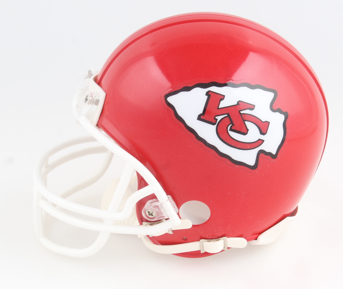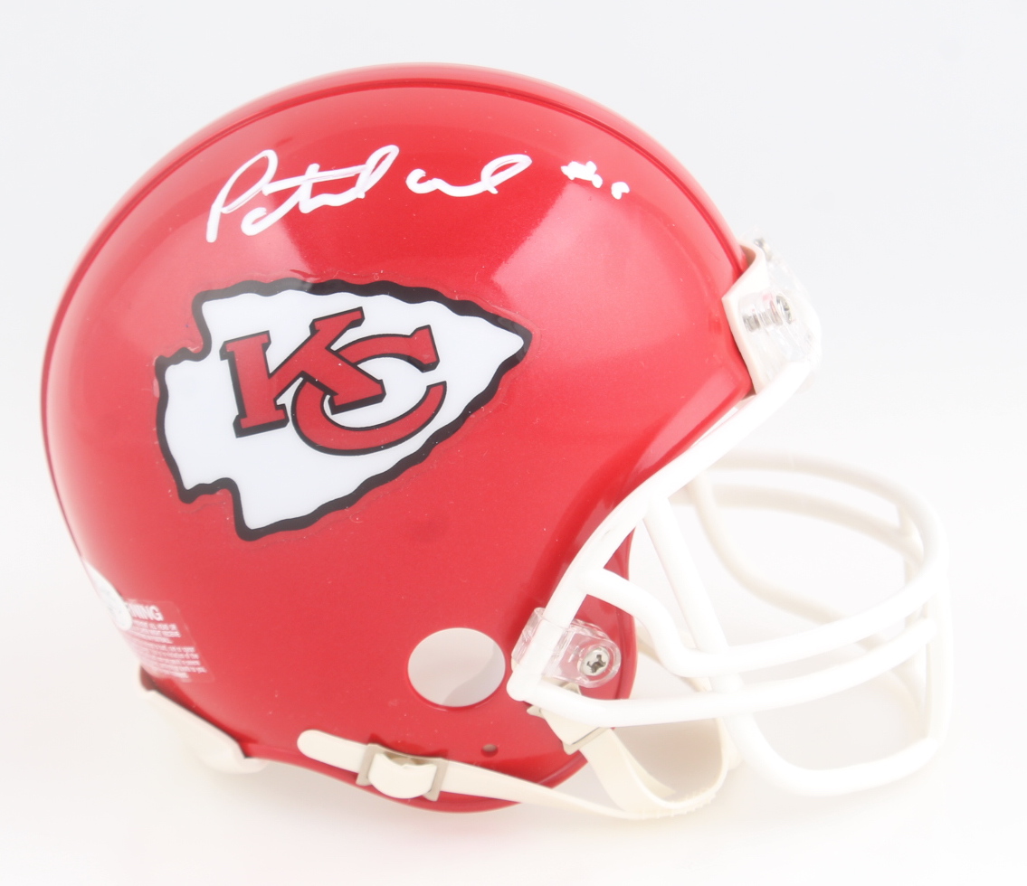 Riddell Kansas City Chiefs mini helmet. Has been hand-signed by Patrick Mahomes.