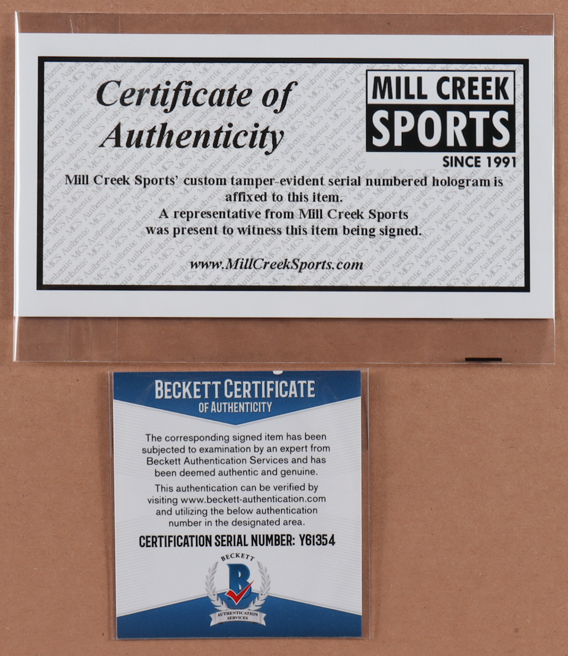 The lot / autograph(s) includes an official Beckett Authentication Services serially-numbered hologram and matching COA as well as an official Mill Creek Sports hologram and matching COA for authenticity purposes.