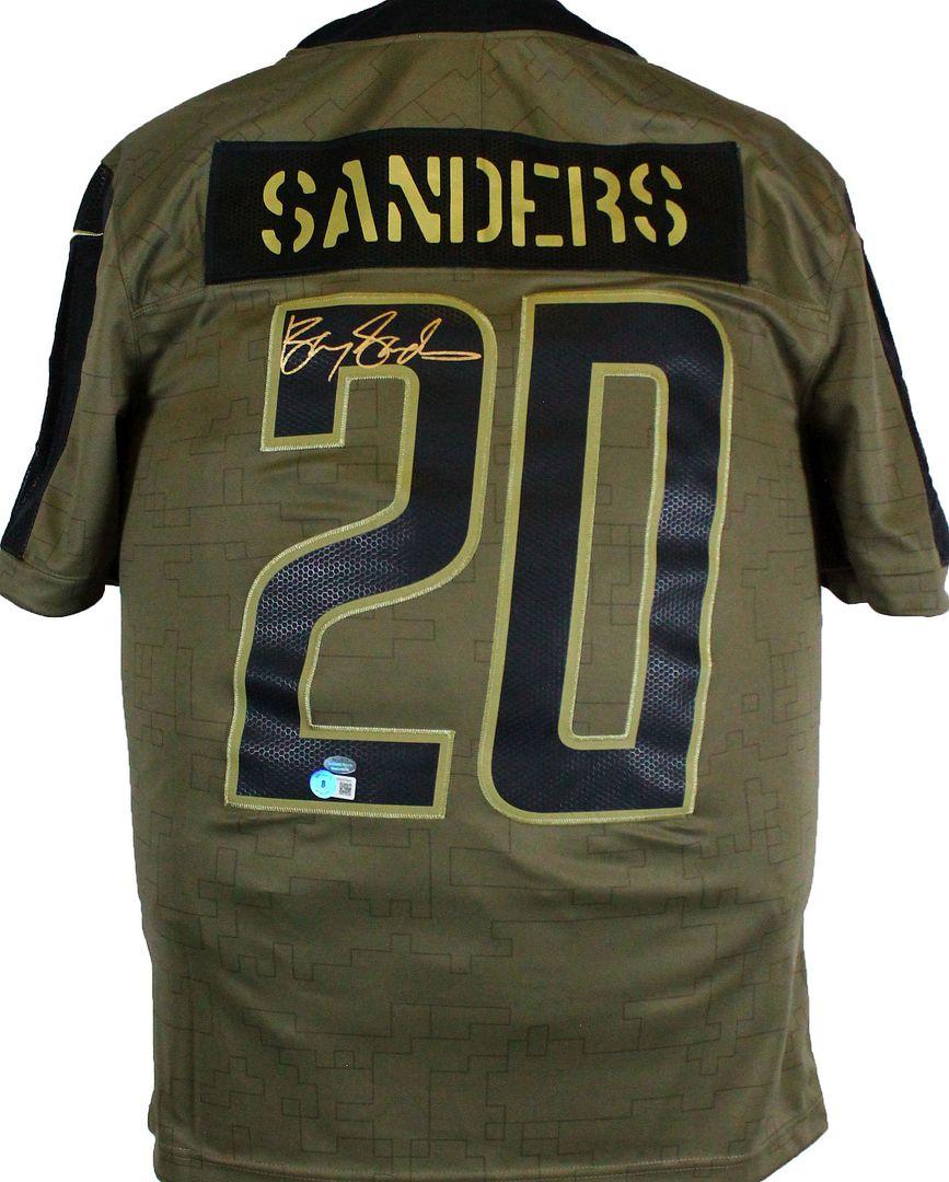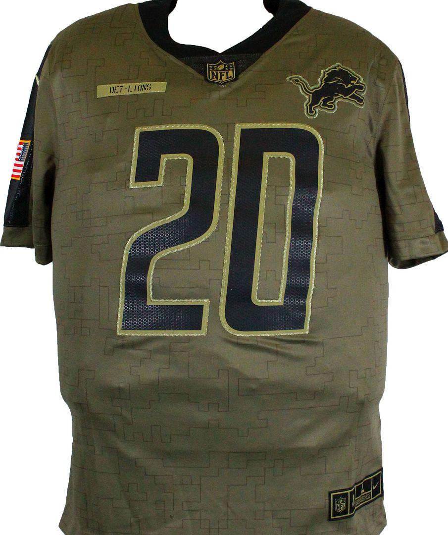 Nike on-field style jersey. Everything is sewn on, size L. Hand-signed by Barry Sanders (Detroit Lions, HOF).
