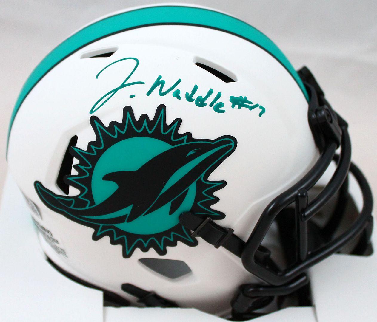Riddell Miami Dolphins Lunar Alternate Speed mini helmet. Hand-signed by Jaylen Waddle.
