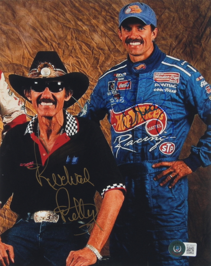 Photo measures 8" x 10" in size and has been hand-signed by Richard Petty (HOF) and Kyle Petty.