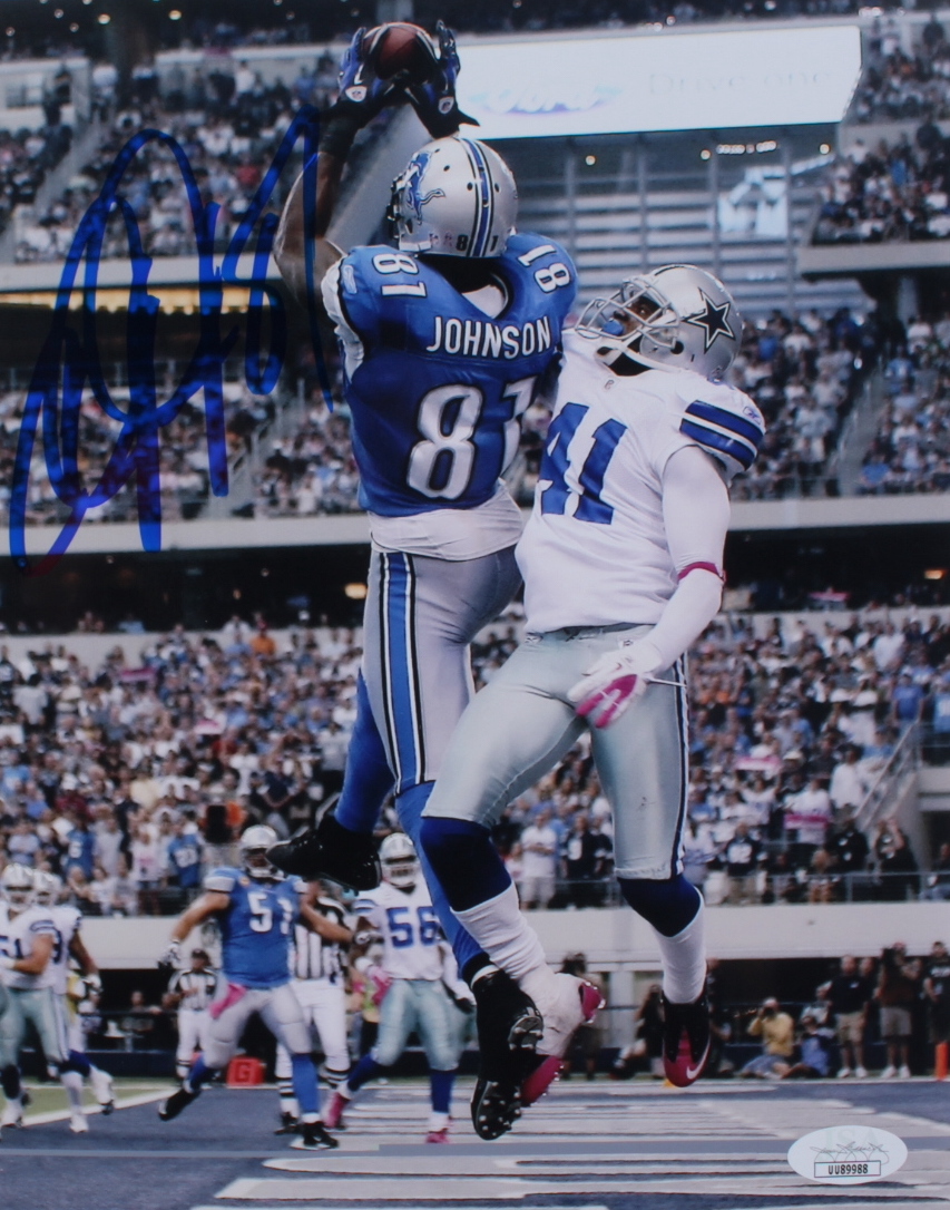 Photo measures 8" x 10" in size and has been hand-signed by Calvin Johnson (Detroit Lions, HOF).