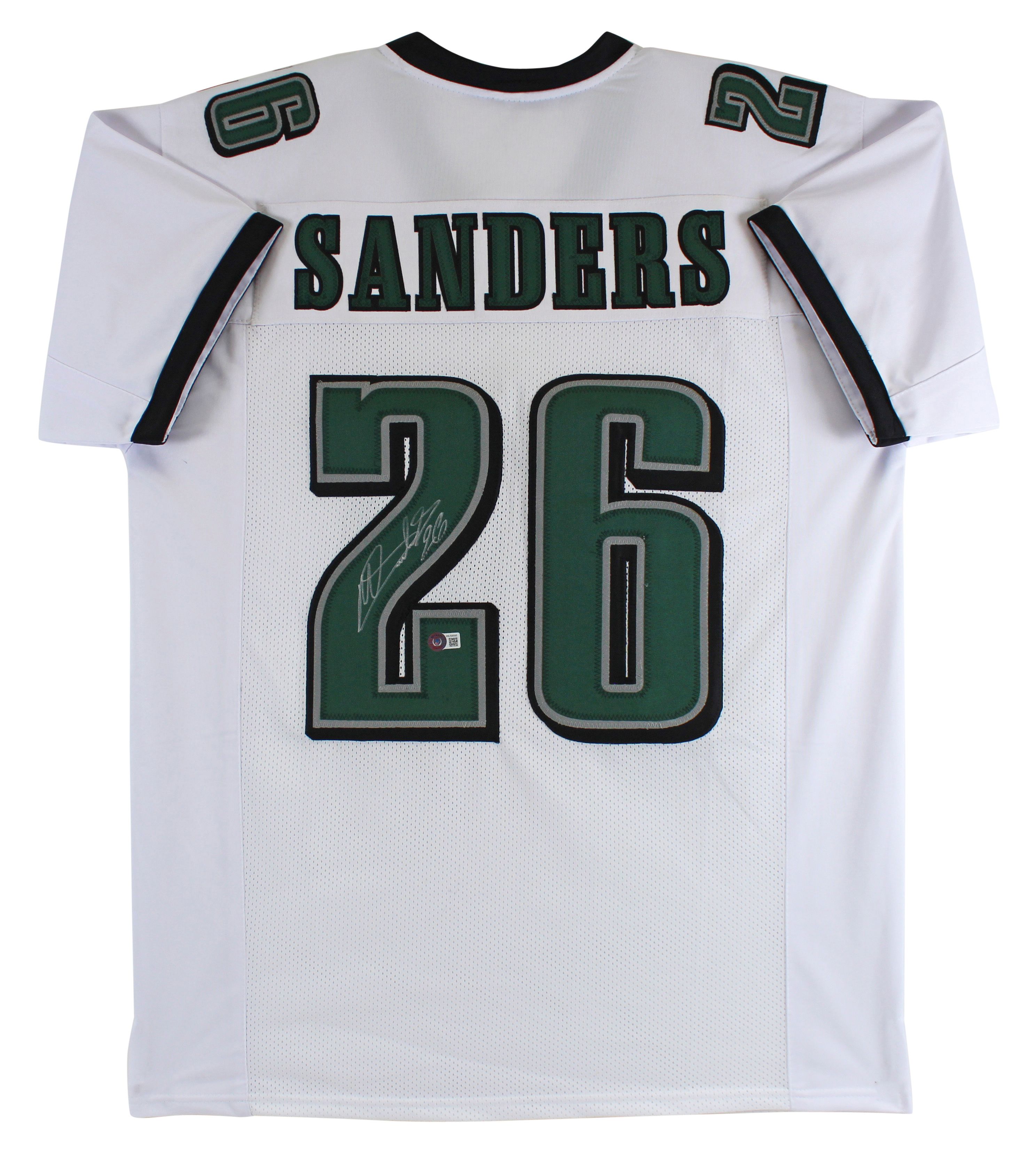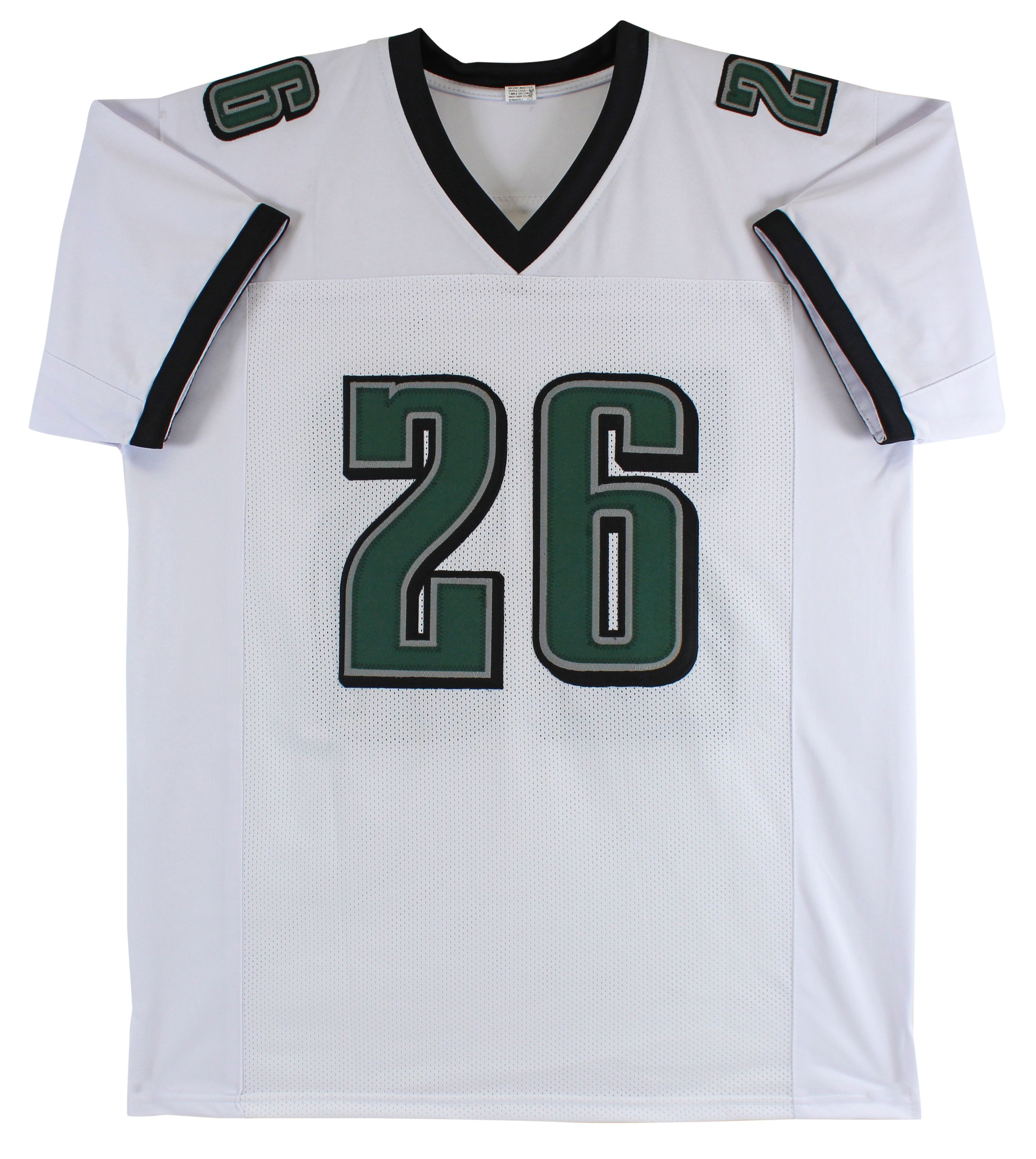 Custom on-field style jersey. Everything printed on, size XL. Hand-signed by Miles Sanders.