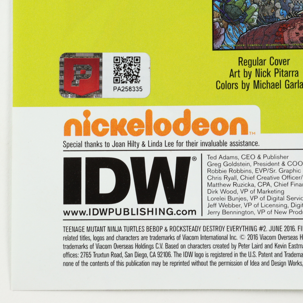 June 2016 "Teenage Mutant Ninja Turtles: Bebop & Rocksteady Destroy Everything" Issue # 1:25 Ben Bates IDW Comic Book. Hand-signed by Kevin Eastman.