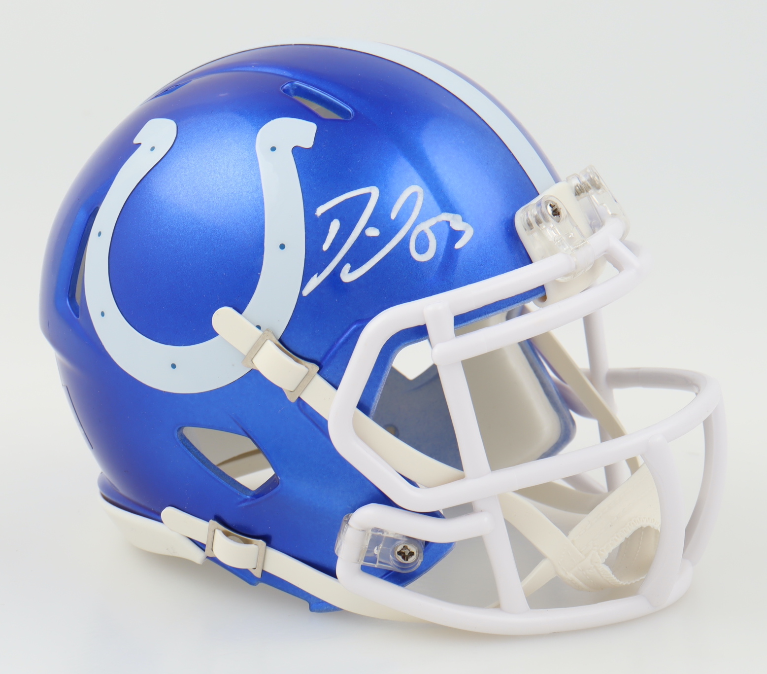 Riddell Indianapolis Colts flash alternate Speed Mini Helmet. Hand-signed by Darius Leonard.