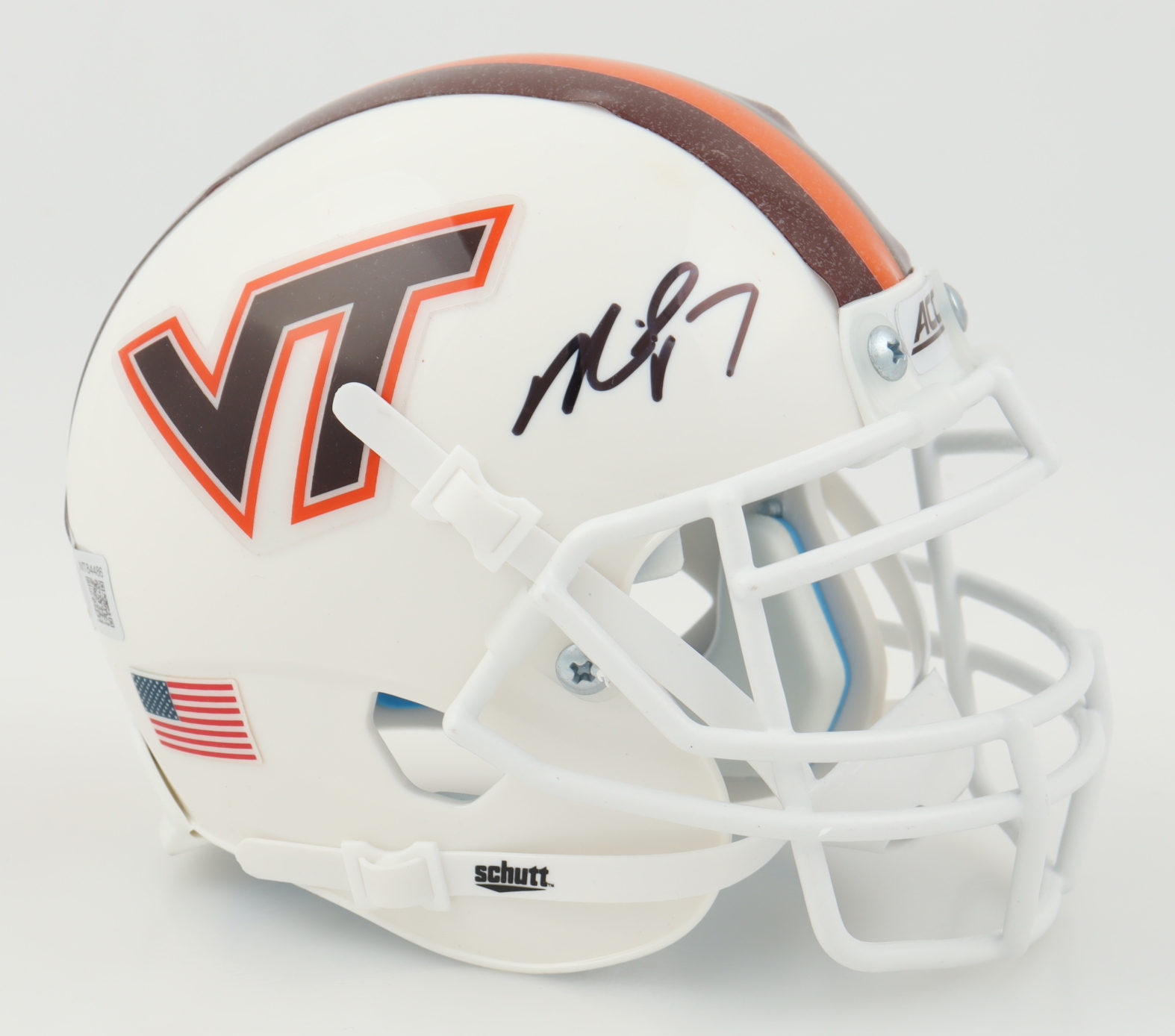 Schutt Virginia Tech Hokies mini helmet. Hand-signed by Michael Vick.