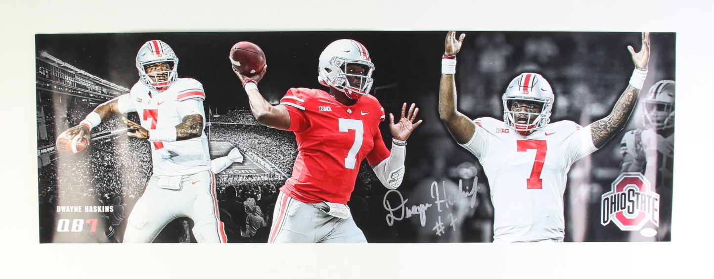 Dwayne Haskins Signed 12x36 Ohio State Buckeyes Poster (JSA)