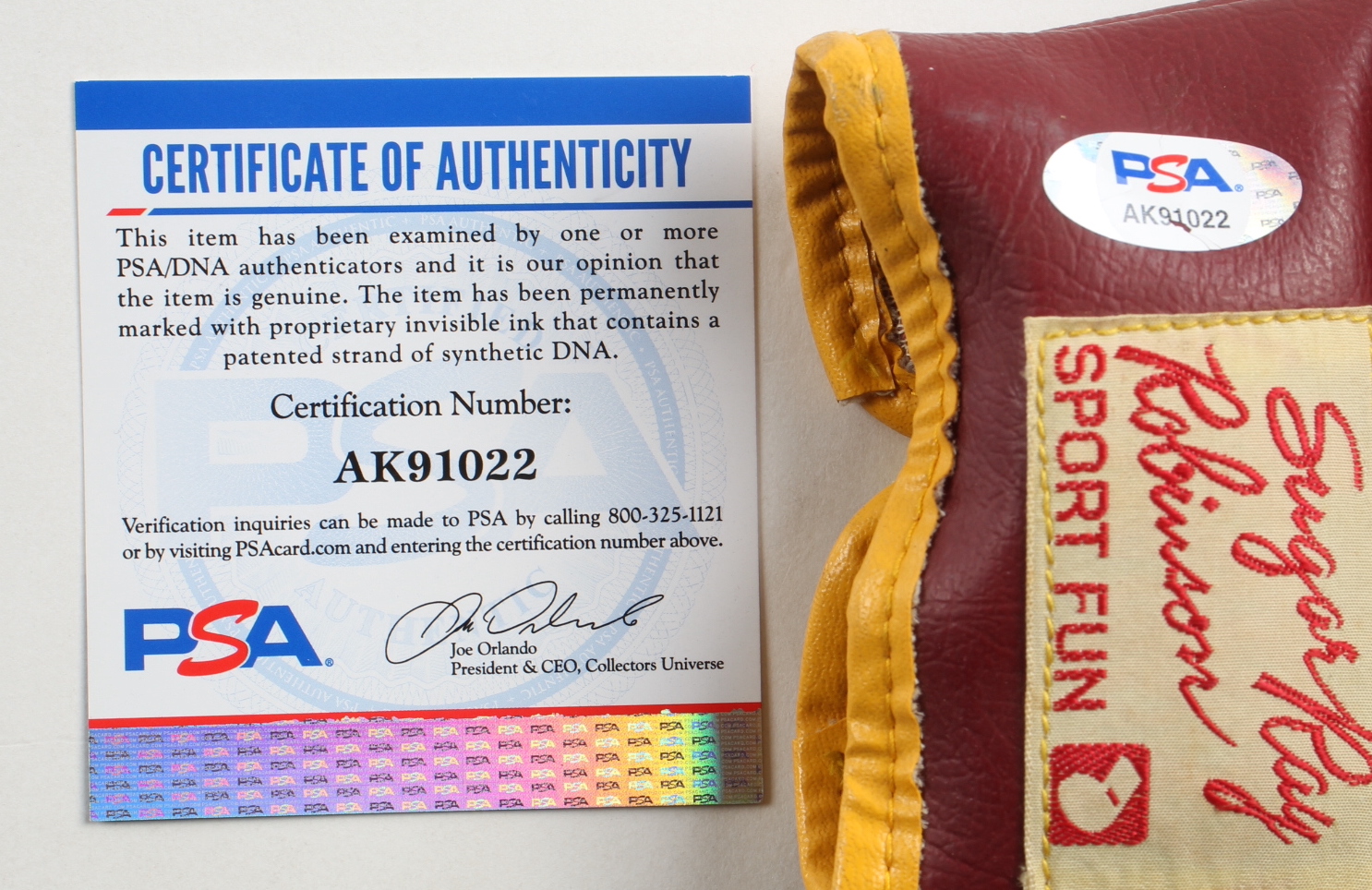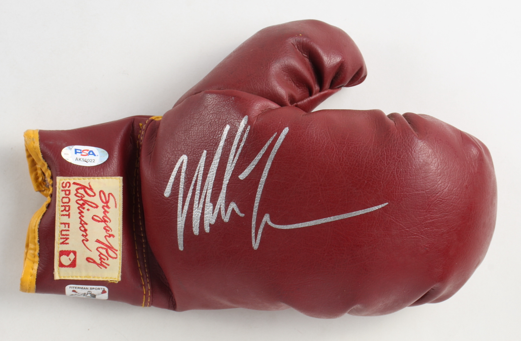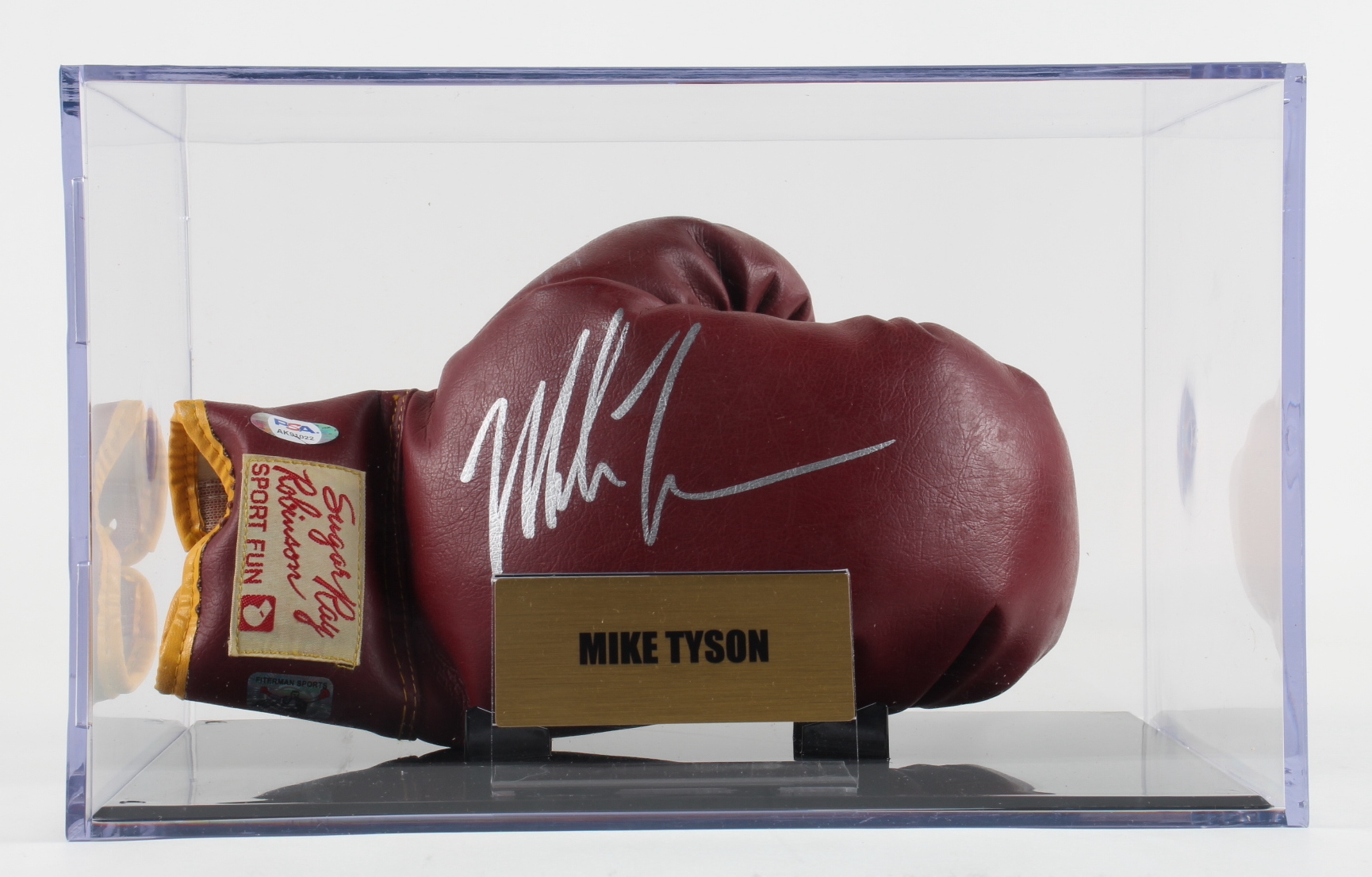 Mike Tyson Signed Vintage Sugar Ray Robinson Boxing Glove with Display Case (PSA & Tyson)